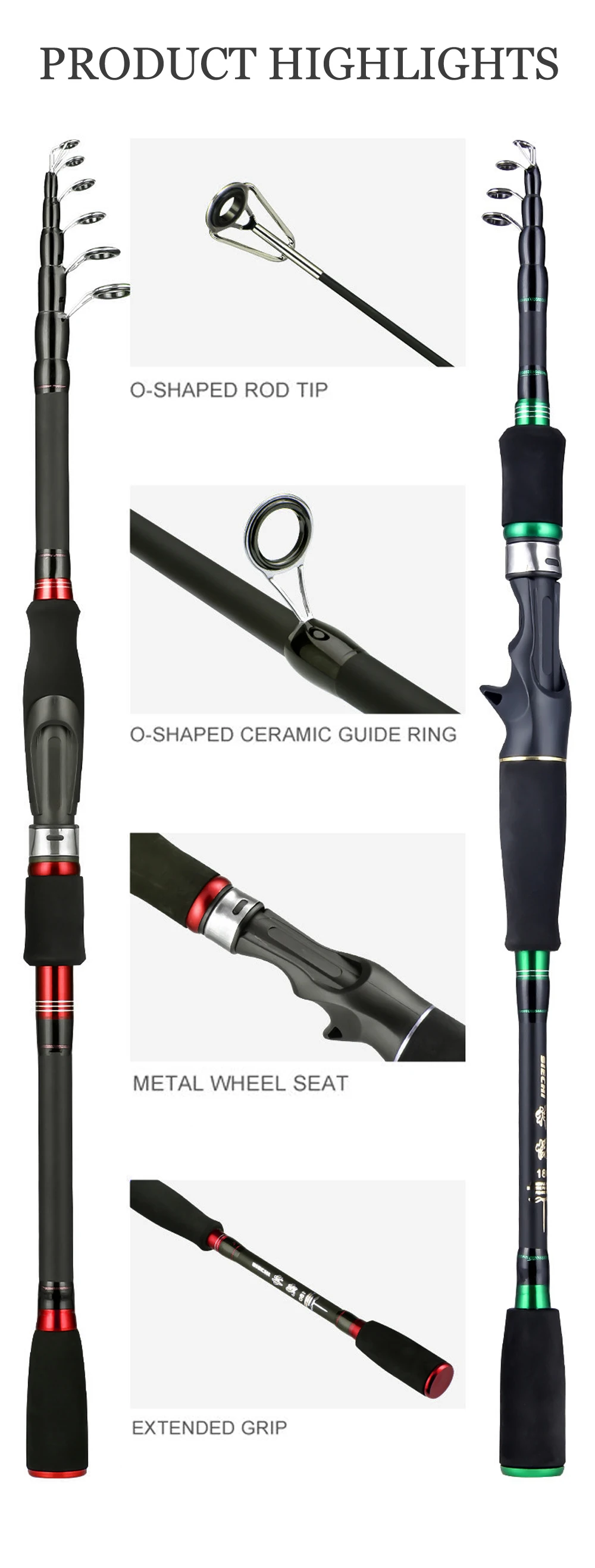 Caña de pescar de fundición giratoria de carbono SIECHI Max Steel Rod con 1,8 m 2,1 m 2,4 m 2,7 m Baitcasting Rod para pesca de lubina