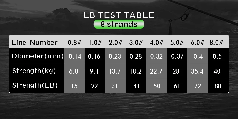 Número de línea 8.0#: 0,50 mm/88 lb/40 kg