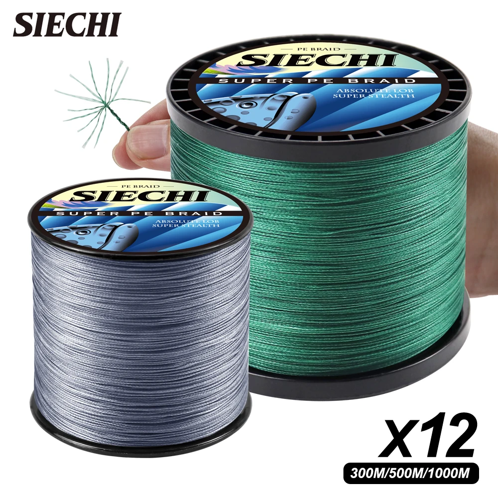 SIECHI 300m 500m 1000m hilo de pescar 12 hebras alambre trenzado Pe súper fuerte 20LB-150LB 8X aparejos de pesca para agua dulce