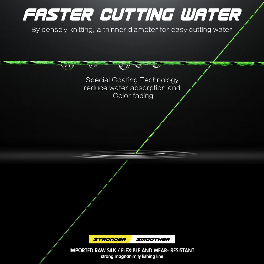 Línea de PE de 8 hilos, material de Japón, construcción trenzada única, hecha de fibras de PE de resistencia ultraalta