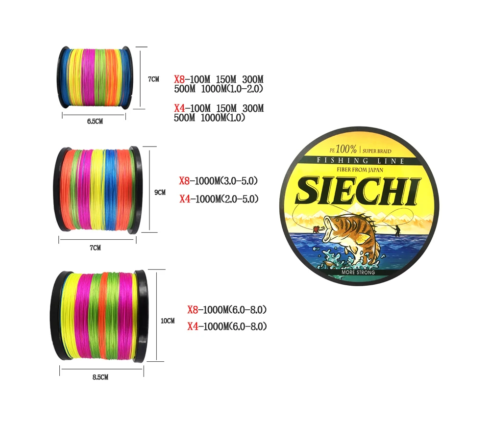 Sedal trenzado SIECHI 4 de 8 trenzados 300m 500m 1000m PE línea trenzada 12-88LB potente sedal