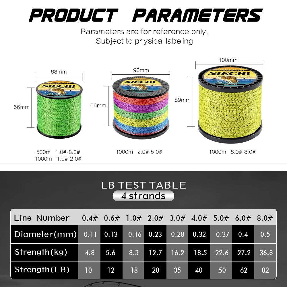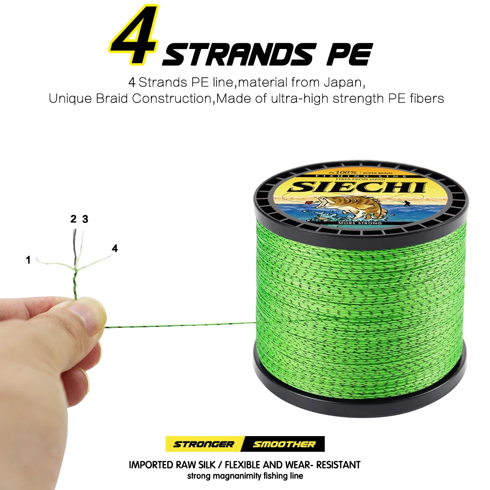 SIECHI 4 hebras línea de pesca trenzada 300M 500M 1000M multifilamento carpa pesca multifunción PE LÍNEA DE Pesca para 10-82LB Pesca