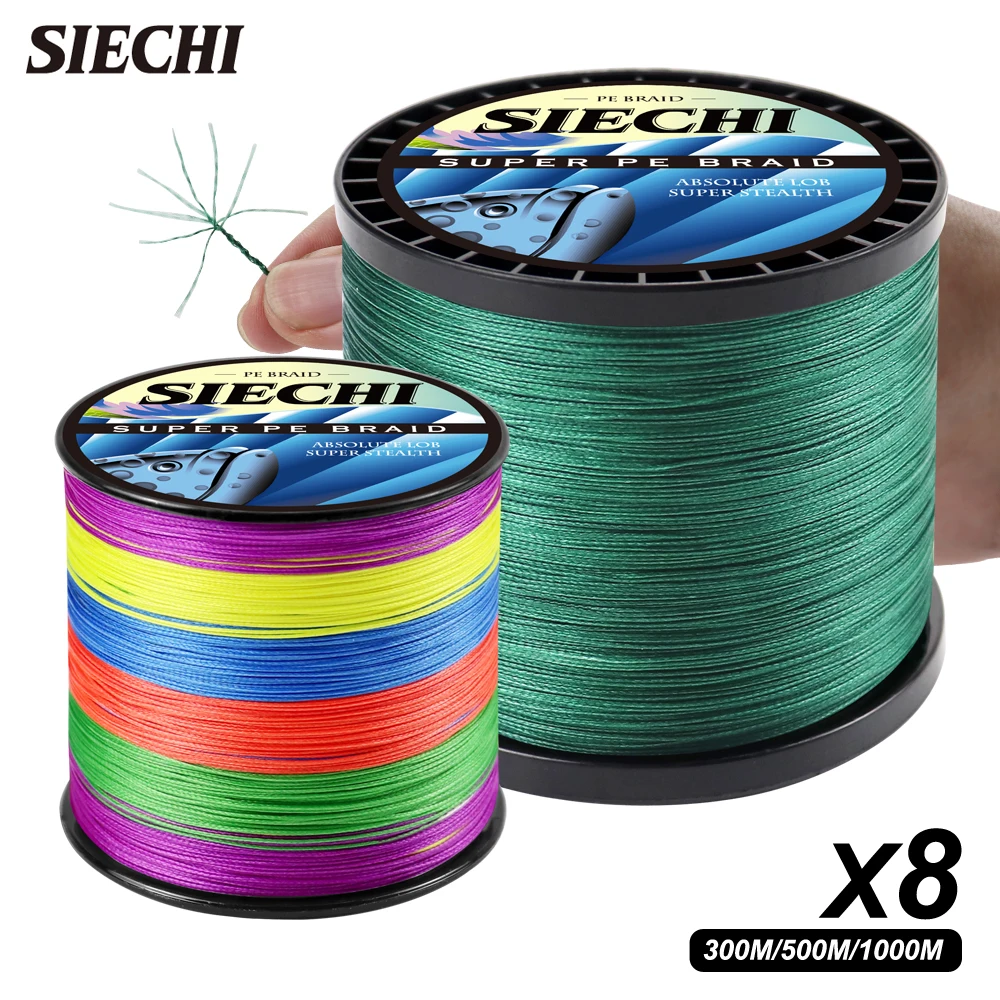 SIECHI X8 Strong 300M 500M 1000M 8 hebras tejas PE línea de pesca trenzada multifilamento 4 alambre trenzado accesorios de pesca de carpa