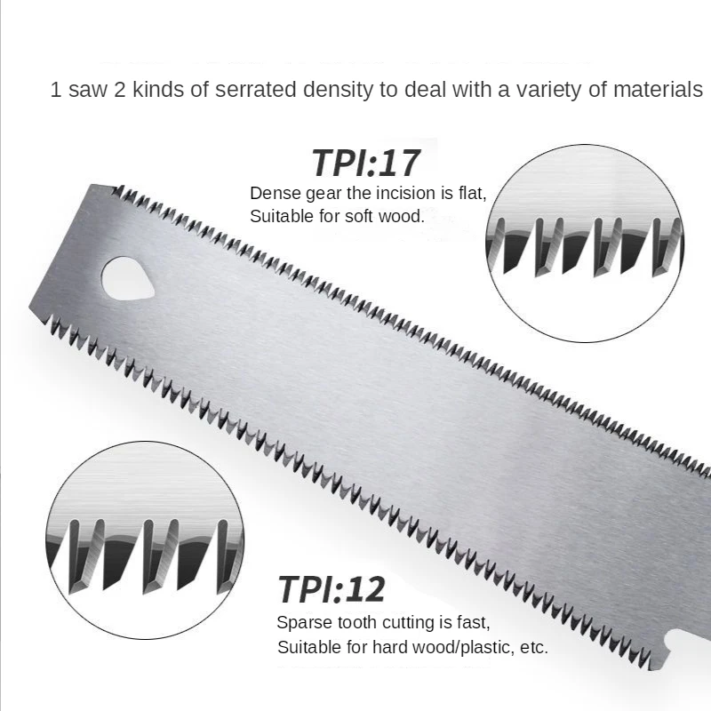 * La sierra de mano pequeña de doble cara con mango recto es pequeña y ligera, adecuada para el corte fino y la producción de piezas pequeñas, y la hoja de sierra no se puede reemplazar.