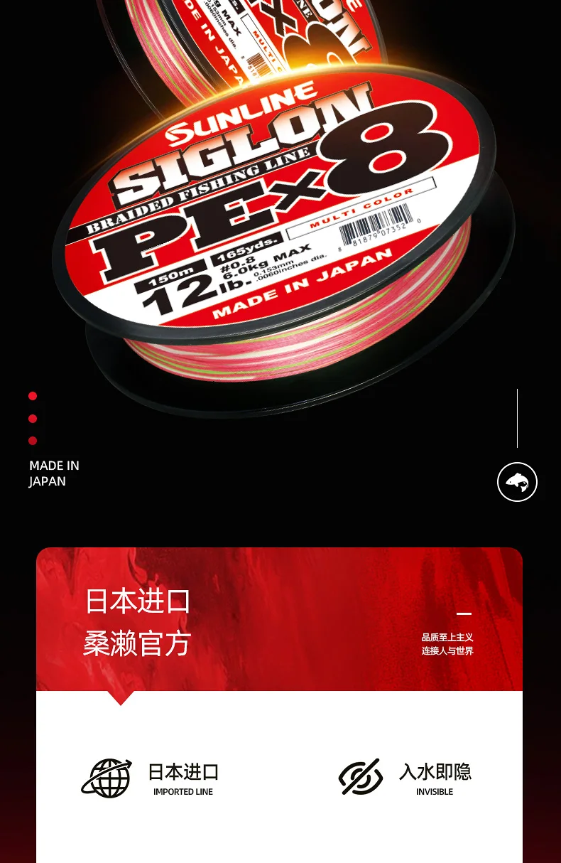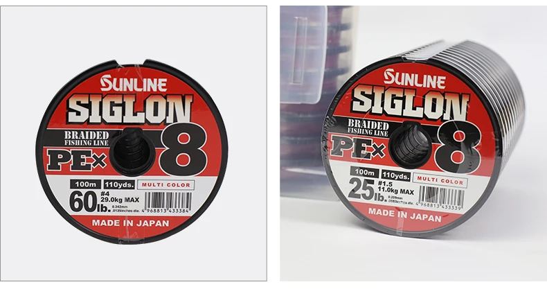 SIGLON-sedal de pesca trenzado, japonés, original, SUNLINE, PE, señuelo, hilos X8, trenzado, multicolor, alambre tejido, 100m por bobina