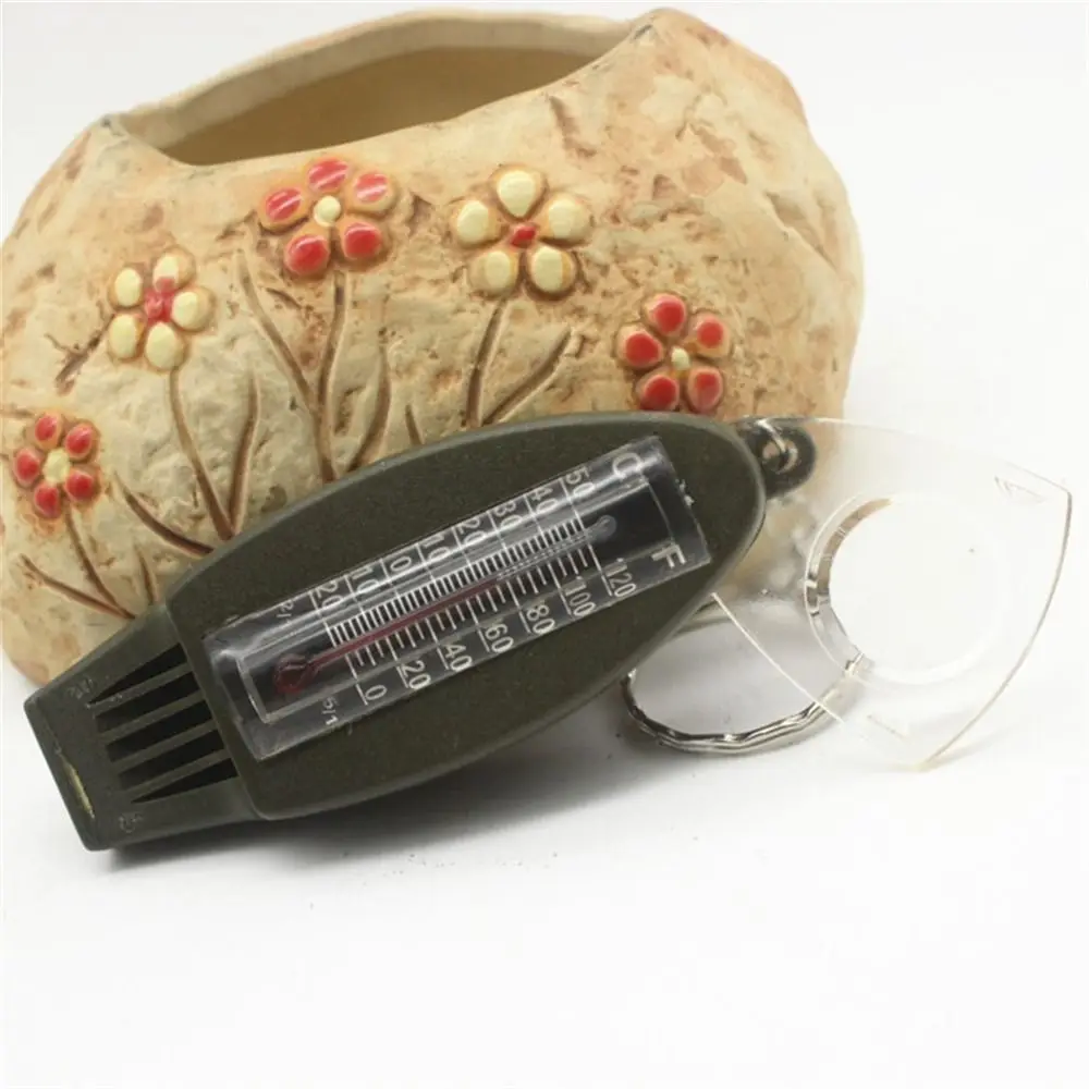 Material: ABS Color: Verde Peso: 21g Dimensiones: 81*30*22,mm/3,18*1,18*0,78 pulgadas Funciones: silbato, brújula, termómetro, lupa El paquete incluye: 1 punta cálida de silbato: recuerda que debido a los efectos de iluminación, la configuración de brillo/contraste del monitor, etc. Podría haber algunas ligeras diferencias en el tono de color de la foto del sitio web y el artículo real. Artículo medido a mano, podría ser 1cm diferente, su amable comprensión será muy apreciada.