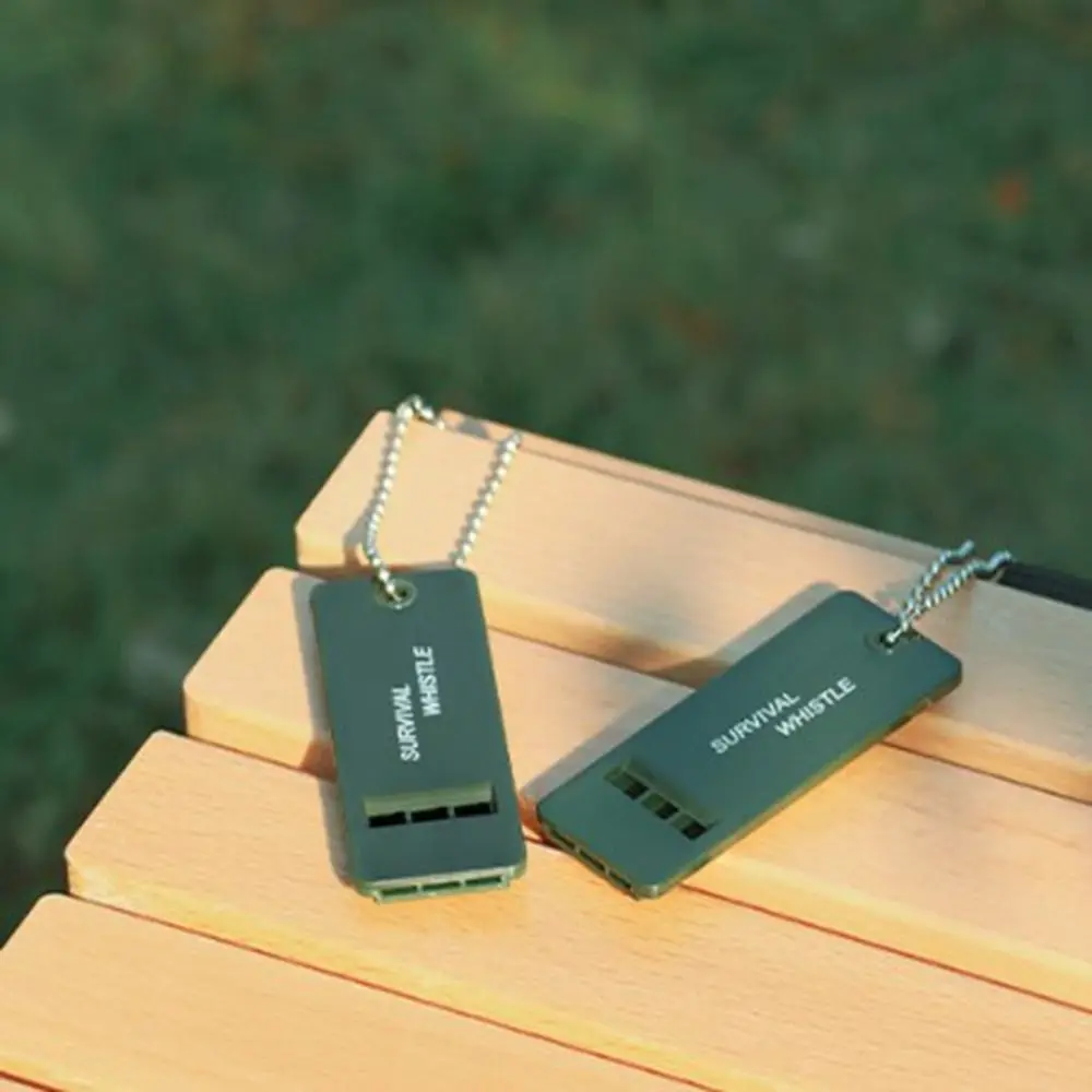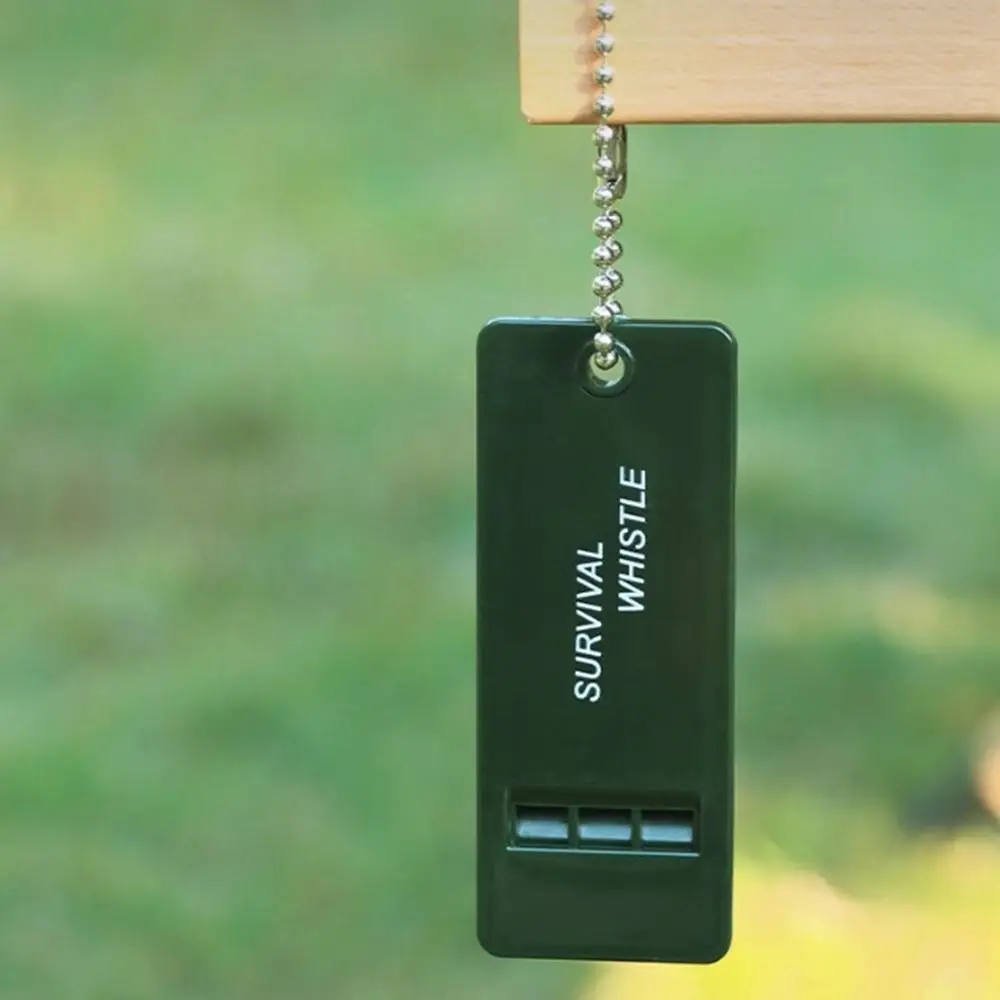 Nuevo con alta calidad Nombre del producto: Material silbato de supervivencia para exteriores: plástico de alta calidad Tipo: 3 frecuencias Tamaño: 70*28*7mm Color: verde oscuro Adecuado para: Camping al aire libre, senderismo, cantidad de deportes de equipo: 1 pieza. Característica:-Diseño de esquina curva, mano de obra suave. El silbato tiene tres agujeros, y cada agujero tiene un sonido diferente. -El sonido es agradable a los oídos. -Con cadena colgante, fácil de llevar. -Cuando viaje al aire libre, puede confirmar su ubicación, evitar perderse, encontrar un compañero y brindar asistencia. El paquete incluye: 1 llavero con silbato de supervivencia de alto decibelio de 3 frecuencias. Aviso: 1. Transición: 1cm=10Mm=0,39 pulgadas. 2. Por favor, permita un error de 1-2cm debido a la medición manual y asegúrese de que no le importe antes de realizar el pedido. 3. Por favor, comprenda que los colores pueden existir aberraciones cromáticas debido a la diferente colocación de las imágenes.
