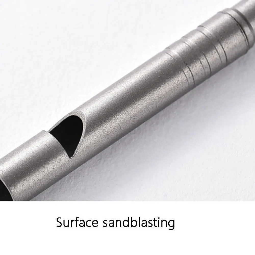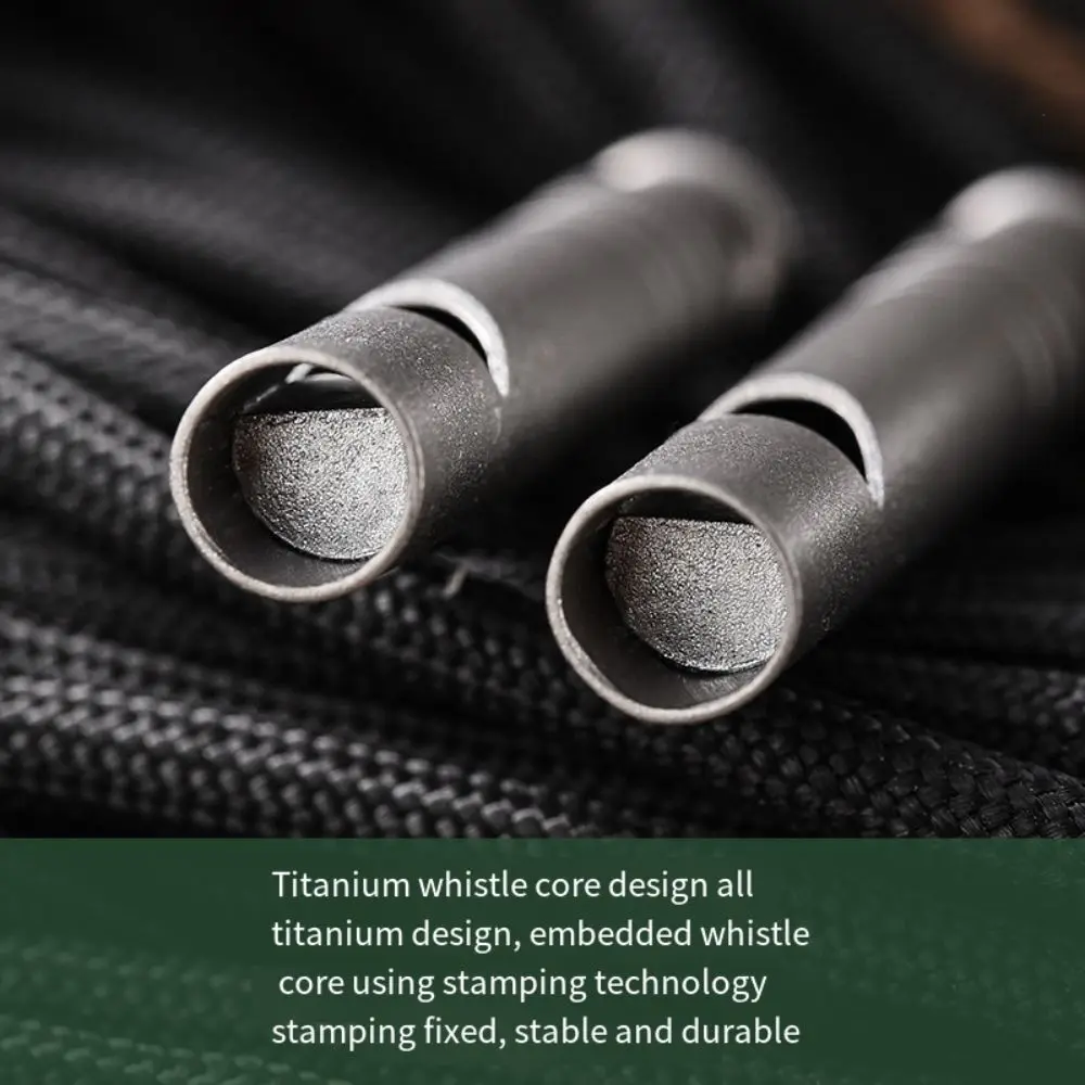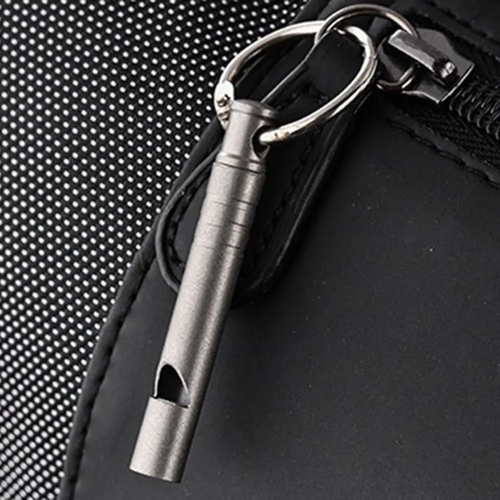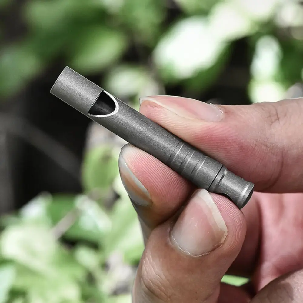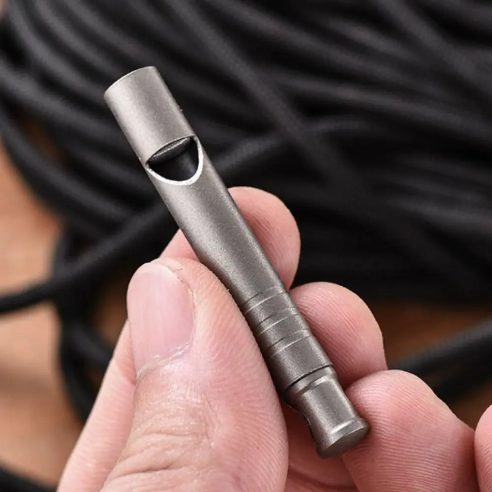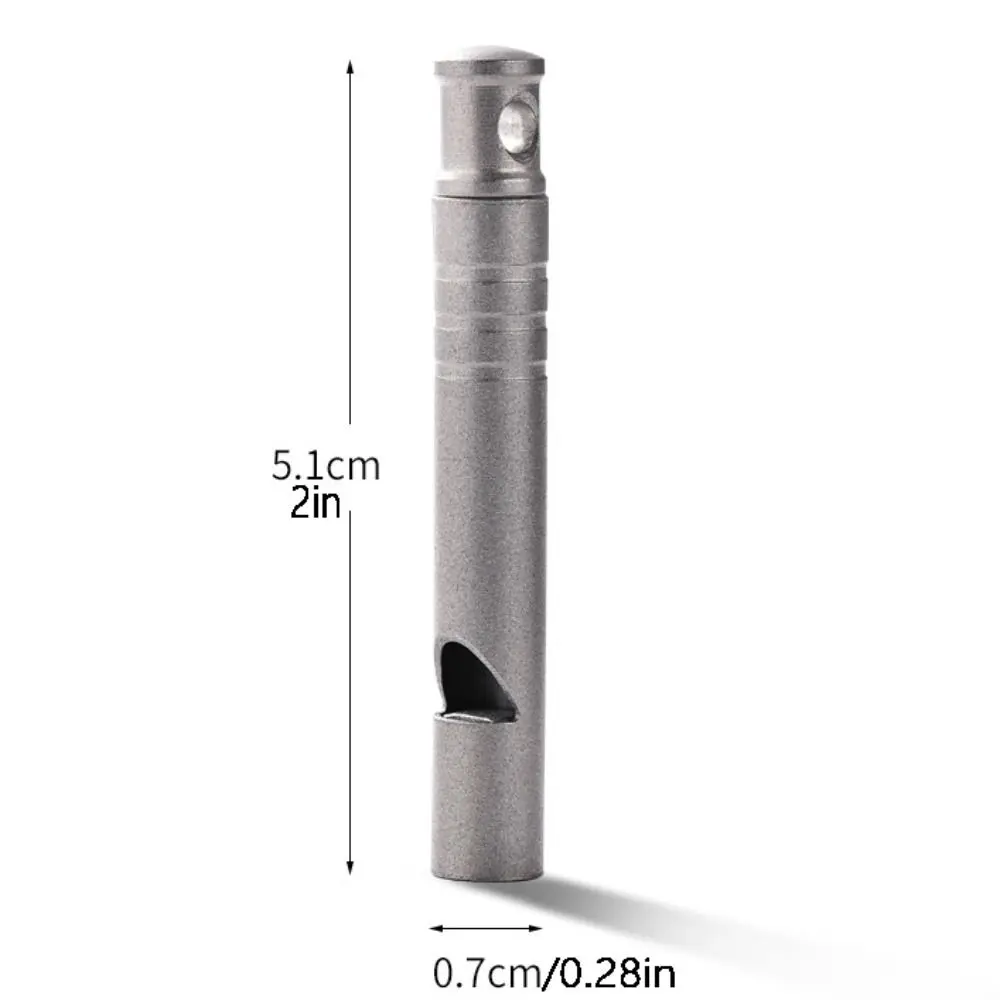 Tipo: silbato de camping Tamaño: 5,1*0,7 cm (2,01*0.28 pulgadas) Color: titanio Material del color: titanio El paquete incluye: 1 pieza Silbato de camping Características: 1. Construcción de titanio, ligero. Resistente a la corrosión y duradero. 2. Con un cordón para facilitar el transporte. 3. Suficientemente fuerte y se puede escuchar desde gran distancia. 4. Adecuado para supervivencia de emergencia, senderismo, camping, viajes, entrenamiento de mascotas, deportes, navegación, etc.