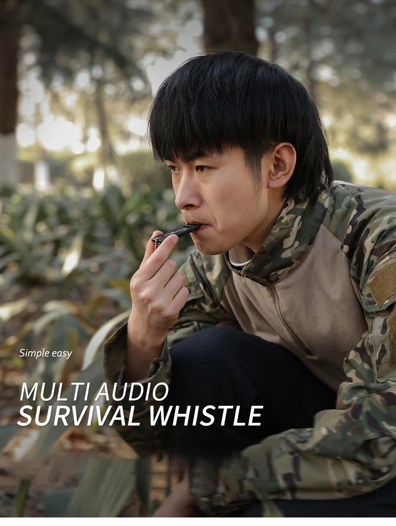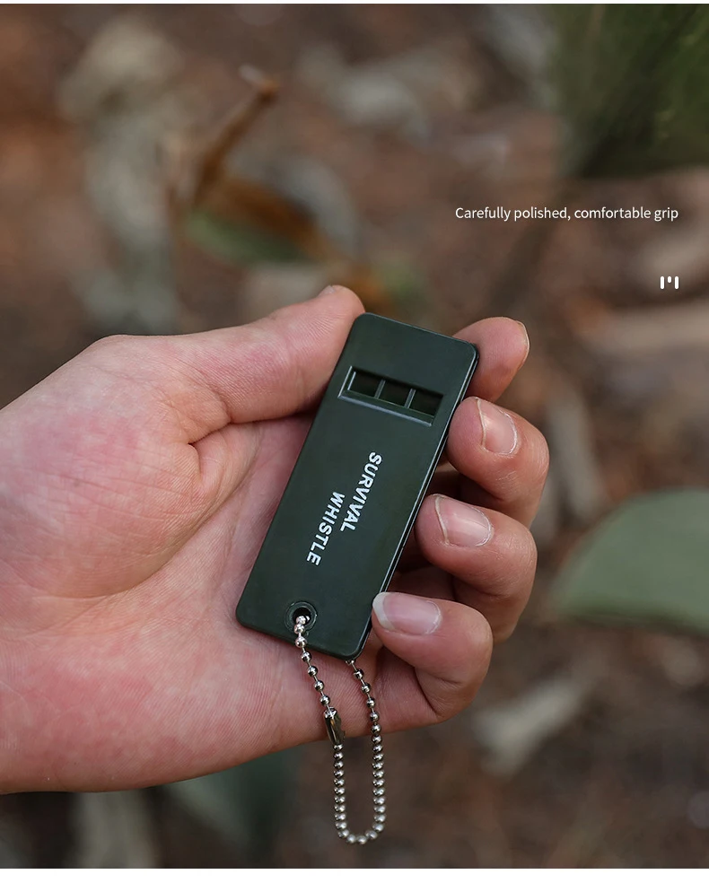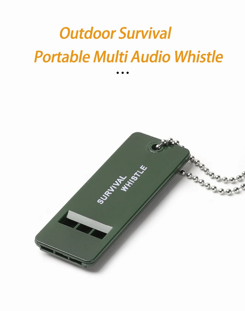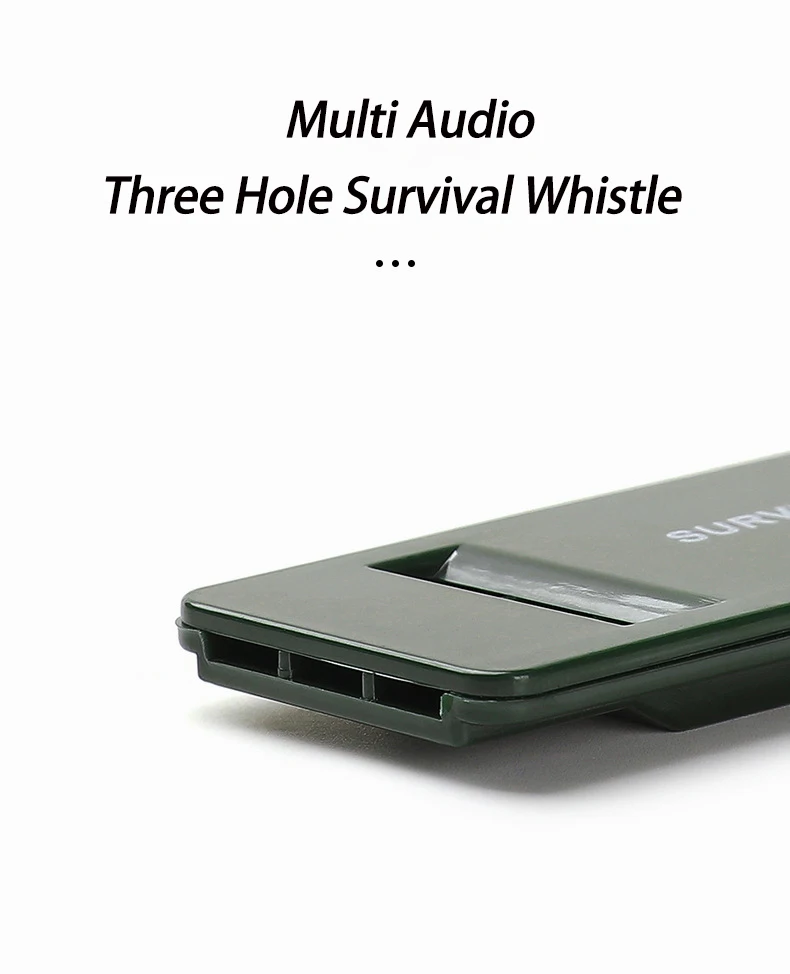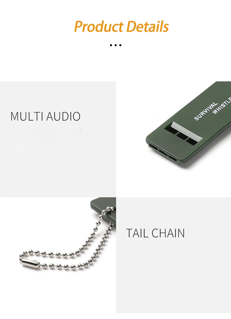 1. Silbato fuerte con 3 agujeros; cada orificio puede hacer un sonido diferente, agradable al oído; el silbato viaja más lejos que el sonido. El diseño conveniente hace que sea fácil emitir un sonido fuerte y claro.