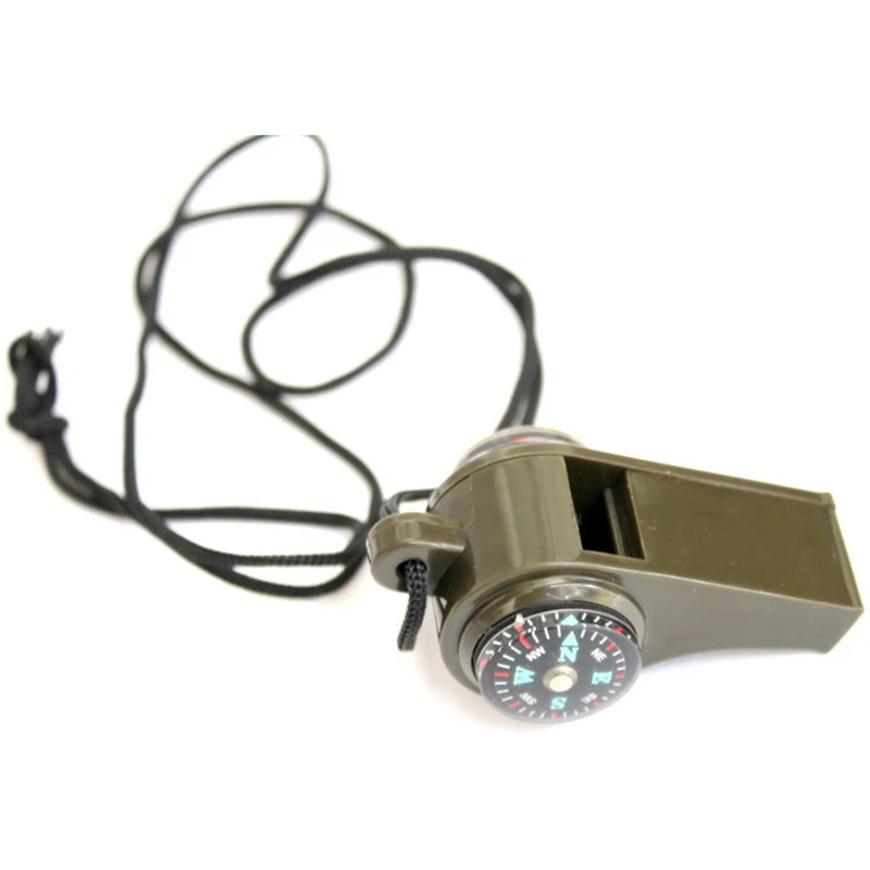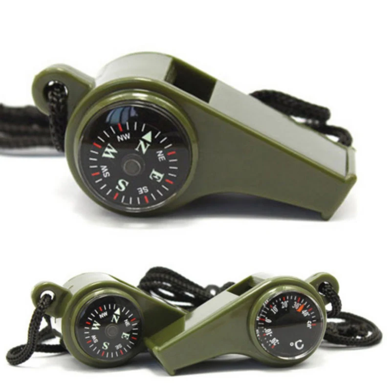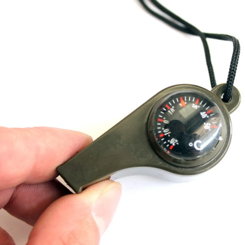 Silbato de rescate de emergencia de alto decibelio con brújula, termómetro y llavero, para acampar, senderismo y actividades al aire libre