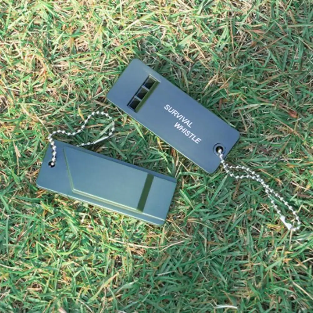 Nuevo con alta calidad Nombre del producto: Material silbato de supervivencia para exteriores: plástico de alta calidad Tipo: 3 frecuencias Tamaño: 70*28*7mm Color: verde oscuro Adecuado para: Camping al aire libre, senderismo, cantidad de deportes de equipo: 1 pieza. Característica:-Diseño de esquina curva, mano de obra suave. El silbato tiene tres agujeros, y cada agujero tiene un sonido diferente. -El sonido es agradable a los oídos. -Con cadena colgante, fácil de llevar. -Cuando viaje al aire libre, puede confirmar su ubicación, evitar perderse, encontrar un compañero y brindar asistencia. El paquete incluye: 1 llavero con silbato de supervivencia de alto decibelio de 3 frecuencias. Aviso: 1. Transición: 1cm=10Mm=0,39 pulgadas. 2. Por favor, permita un error de 1-2cm debido a la medición manual y asegúrese de que no le importe antes de realizar el pedido. 3. Por favor, comprenda que los colores pueden existir aberración cromática debido a la diferente ubicación de las imágenes.