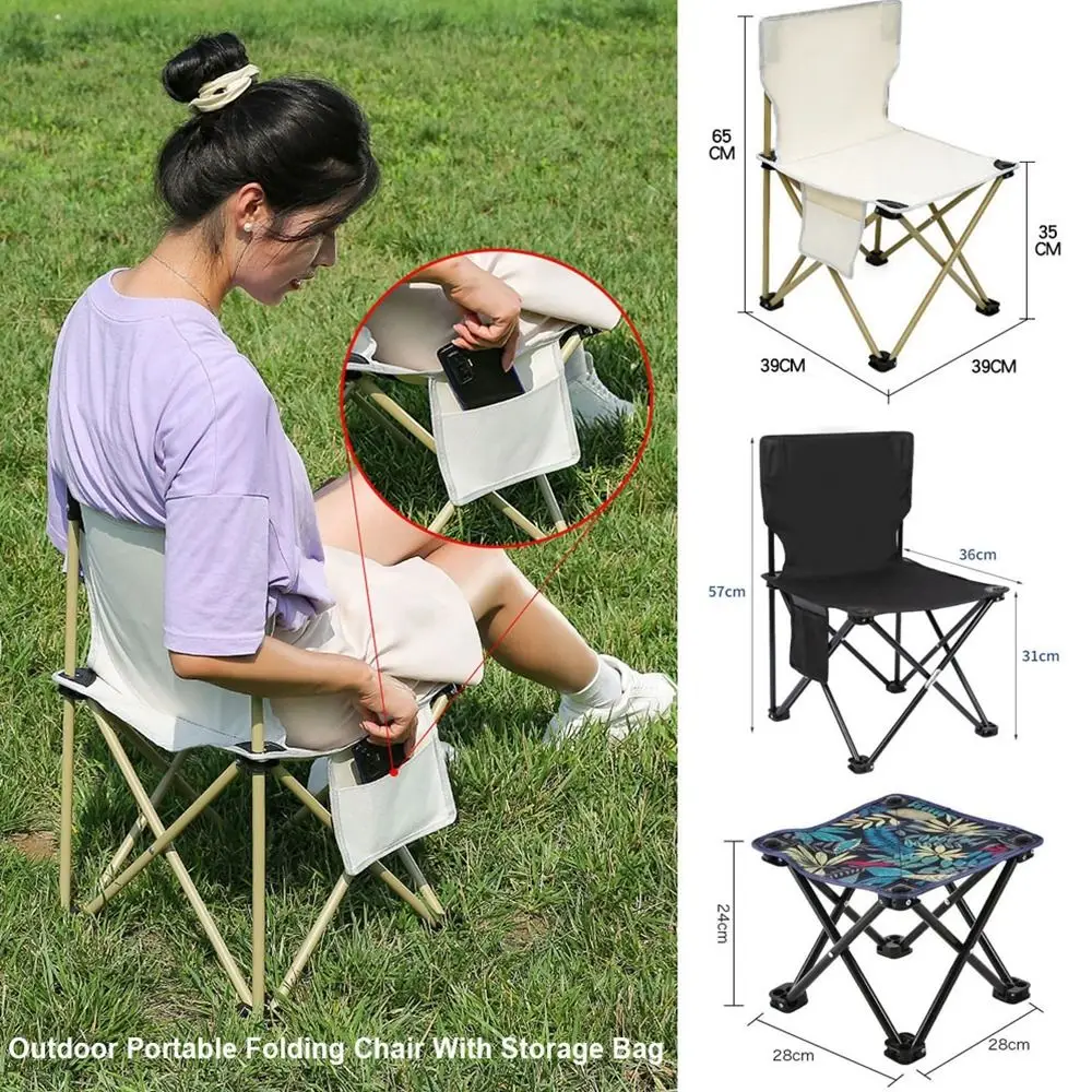 1pc Outdoor Portable Folding Chair With Storage Bag