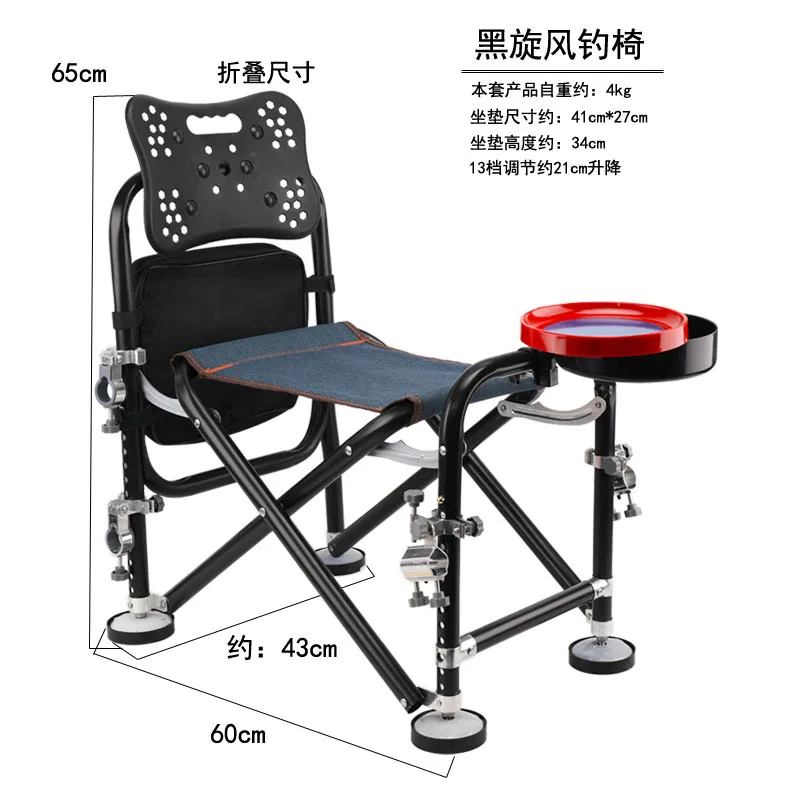 Silla de Pesca multifuncional con soporte de carga fuerte, juego de silla de Pesca de aleación de aluminio, respaldo ajustable, reclinable de cuatro patas