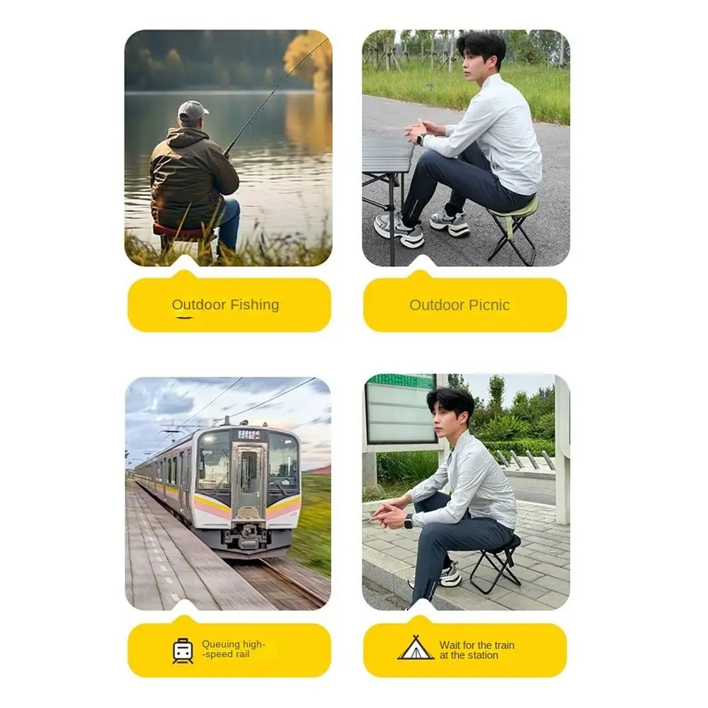 El paquete incluye: 1 mini silla plegable portátil 1.Taburete plegable para bolso de exterior, una silla plegable portátil y versátil para diversas actividades al aire libre.
