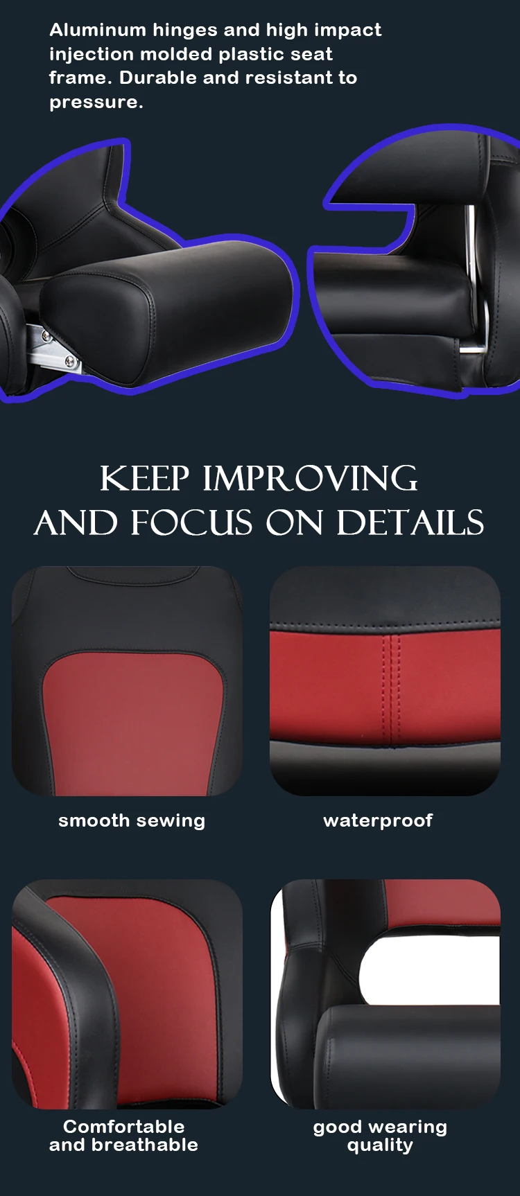 【Material】- El acolchado de espuma de compresión permanece firme después de un uso prolongado, vinilo de grado marino