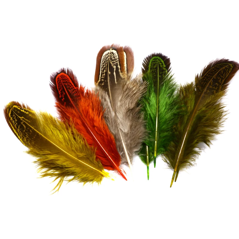 100 plumas atado de moscas color faisán silla de montar perdiz pluma de gallina sustituto Wet Fly Tenkara collar y alas materiales para atar moscas
