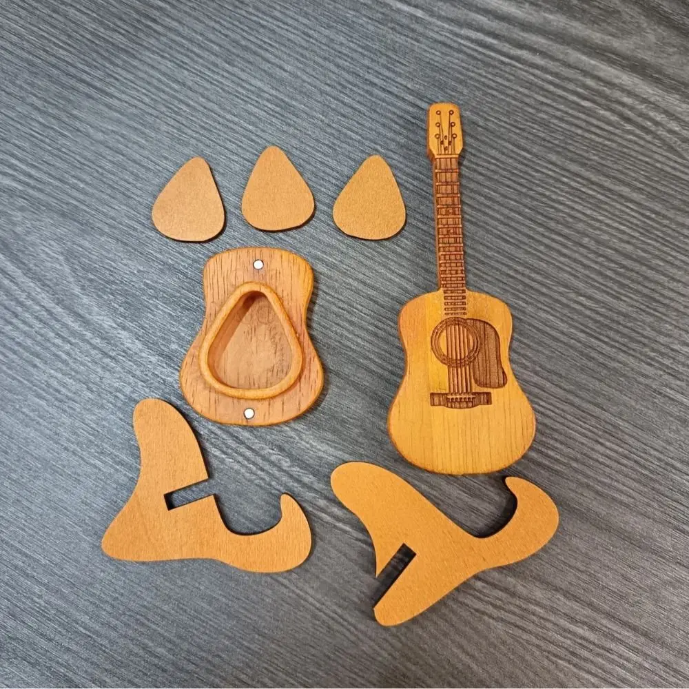 Product List :1set Wooden Guitar Pick Case (1pc box with random 3pcs guitar picks) Feature: