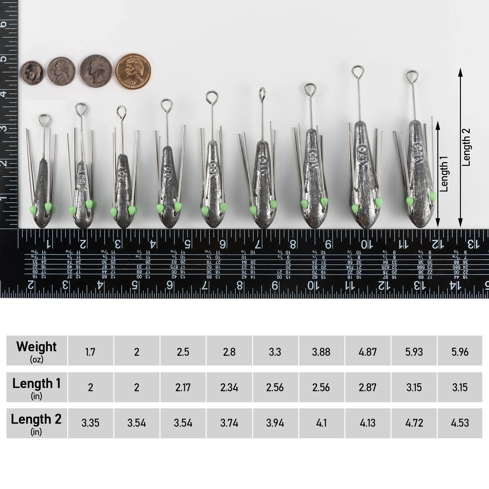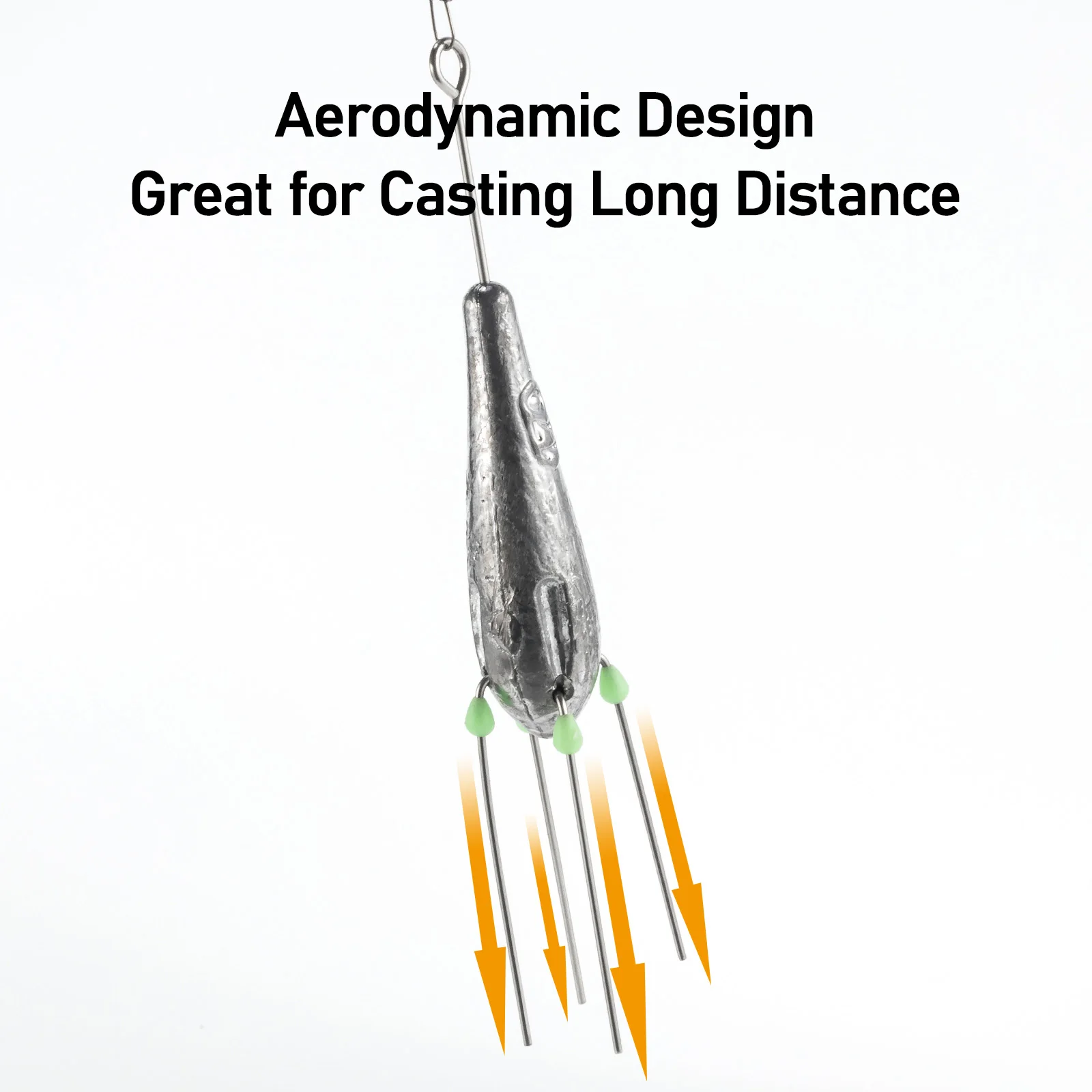 Sinker de araña Sputnik, 2 piezas, pesas de pesca de agua salada, plomo luminoso de fundición larga, pesca de Surf en el mar, atún de lubina