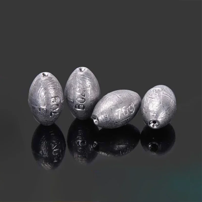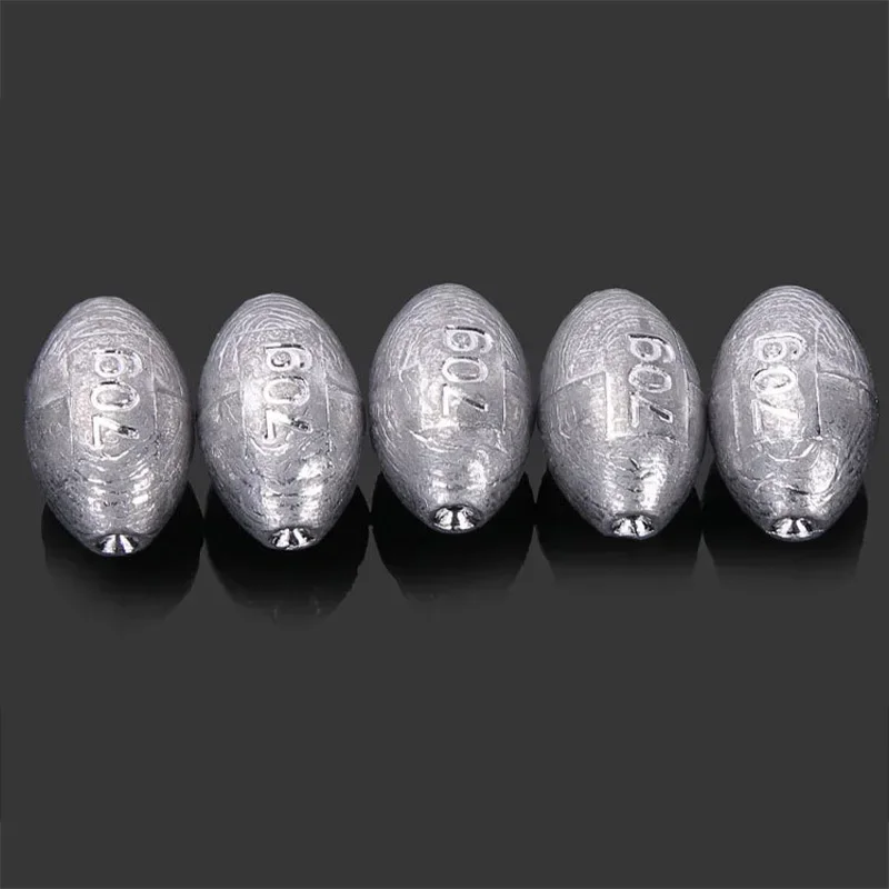 Sinker de peso de pesca, aparejo en forma de oliva, pesas de pesca, fregadero de tiro dividido con escala, accesorios de herramientas de aparejos