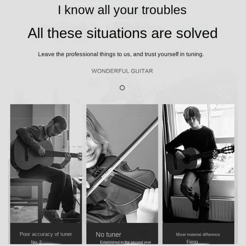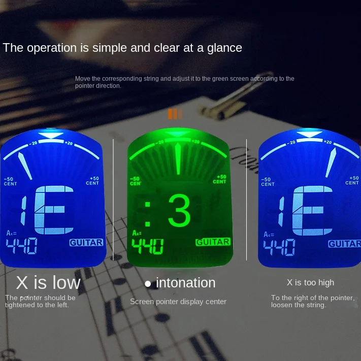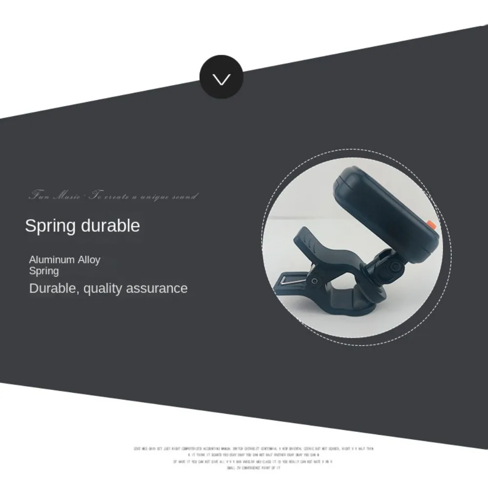 Producto: Tono sintonizador Color: Negro Rango de velocidad: clip calibración Tamaño: 48*73*28mm (1,89*2,87*1.10in) Batería: Batería de litio Cantidad: 1PC Tono sintonizador Alcance aplicable: guitarra, ukelele, violín y otros instrumentos musicales Características: 1. Chip universal: alta frecuencia de vibración y paso preciso. 2. Material antioxidante: carcasa de material antioxidante de alta calidad, más agradable estéticamente. 3. Almohadilla de silicona: hay una almohadilla de silicona dentro del clip para proteger su instrumento de daños. 4. Fácil instalación: diseño simple, apariencia compacta y fácil de usar. 5. Afinación: Sujete el sintonizador en la caja del eje para garantizar una transmisión efectiva de la vibración. Presione el botón de encendido para activar el modo de afinación y seleccione el modo de guitarra para determinar el tono estándar EAGNE (de grueso a fino) para una guitarra de 6 cuerdas