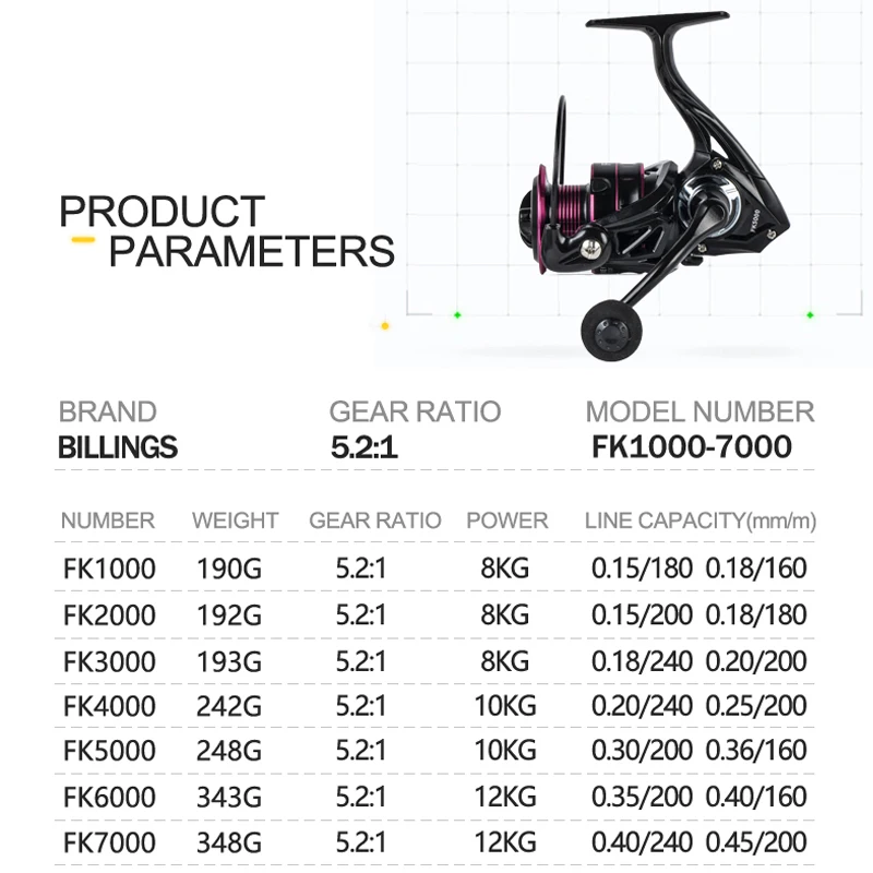 Sistema de arrastre de carrete de pesca, bobina de pesca de rueda giratoria, potencia máxima de 8-12Kg, serie 1000-7000, libre de óxido y rodamiento suave 5,2: 1