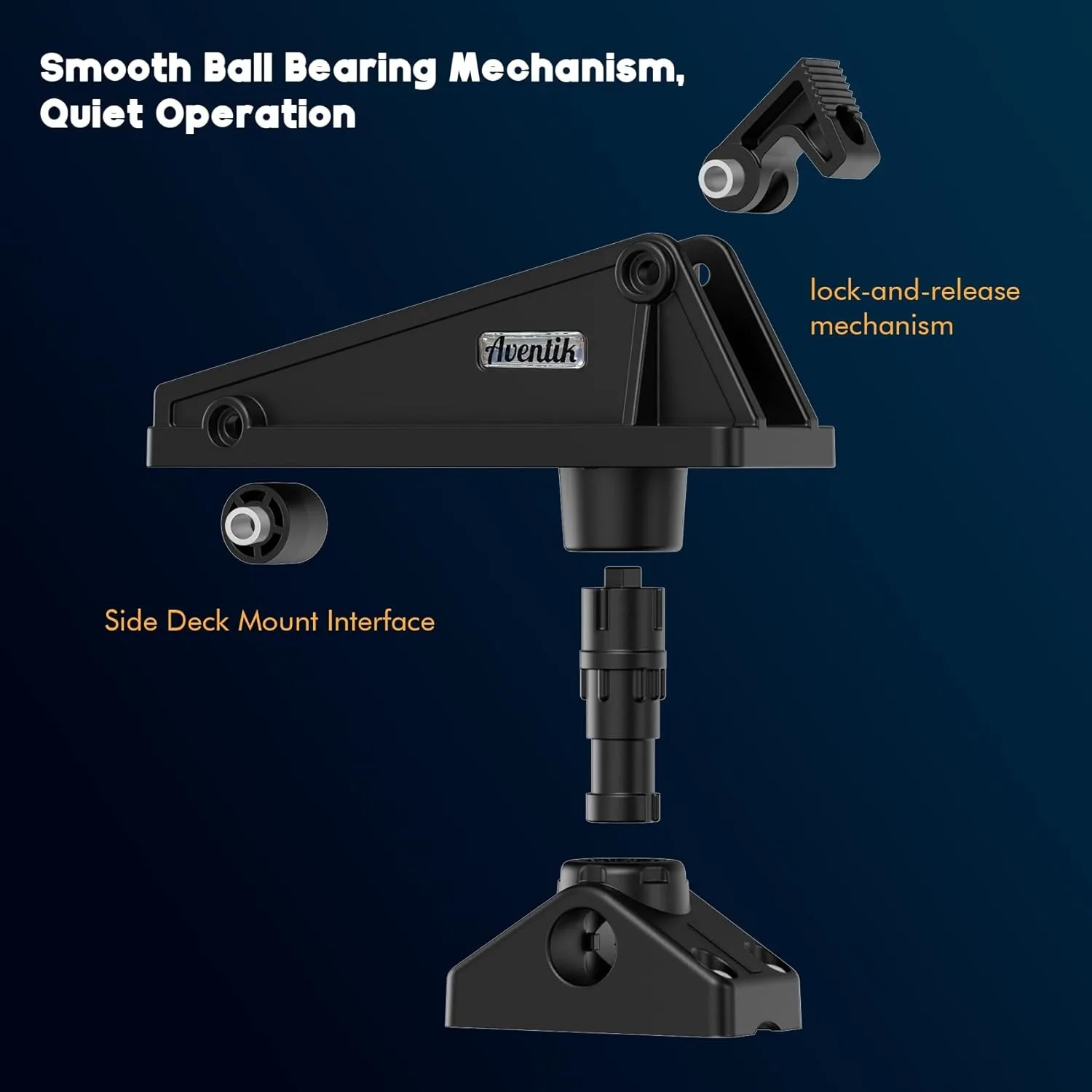 ¡Adaptarse a cualquier configuración!El soporte lateral incluido permite una instalación rápida en superficies planas o verticales, ofreciendo flexibilidad para kayaks, canoas y embarcaciones pequeñas.