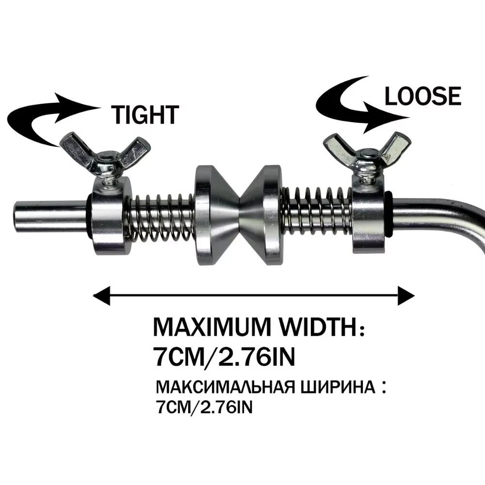 3. Resorte de sujeción de doble cabeza: apriete a la izquierda y afloje a la derecha.El ancho máximo: 7 cm/2,7 pulgadas.