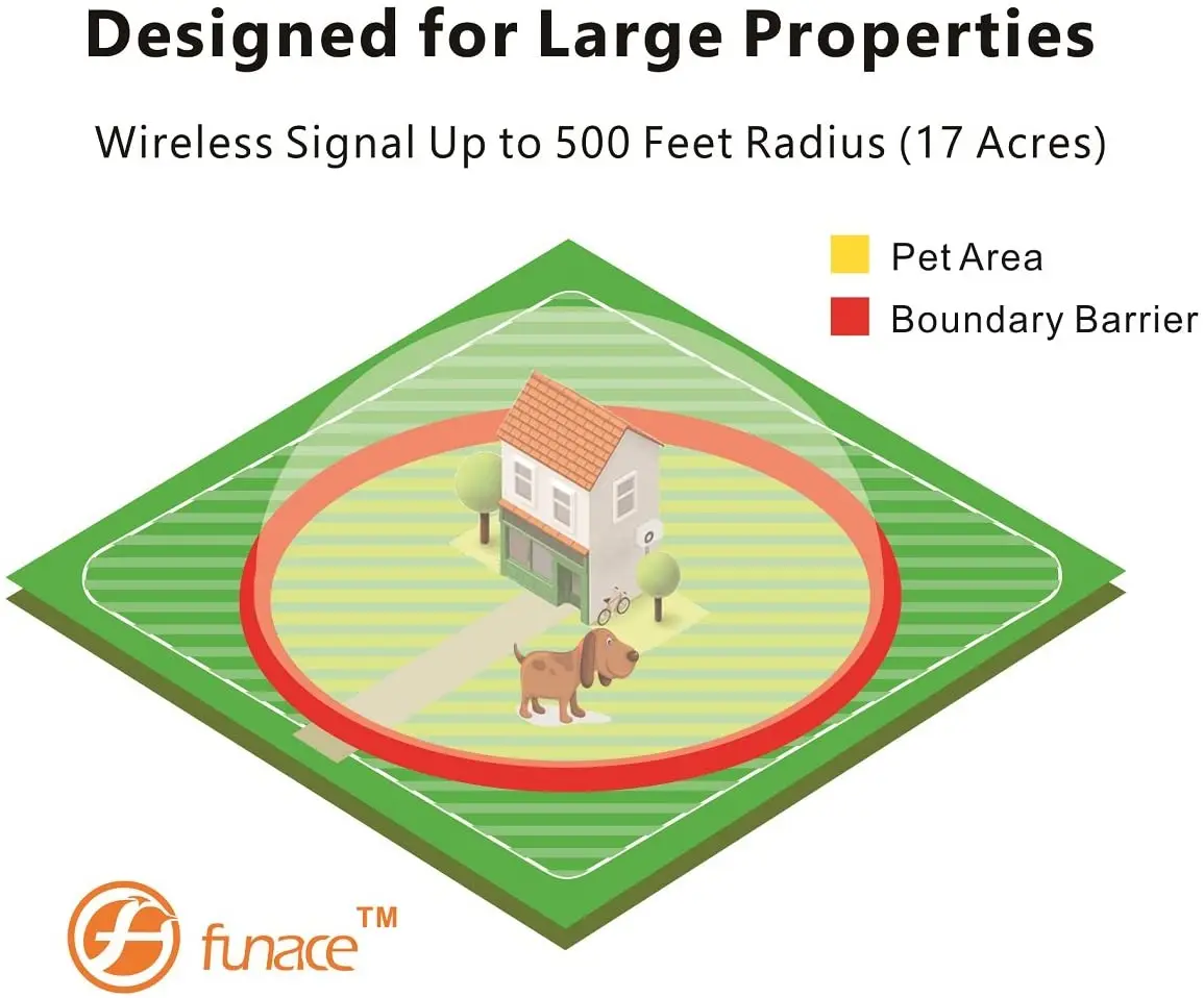 Con su impresionante alcance, este sistema de cercas para mascotas garantiza que su perro permanezca dentro de sus límites, brindándole tranquilidad a los dueños de mascotas.
