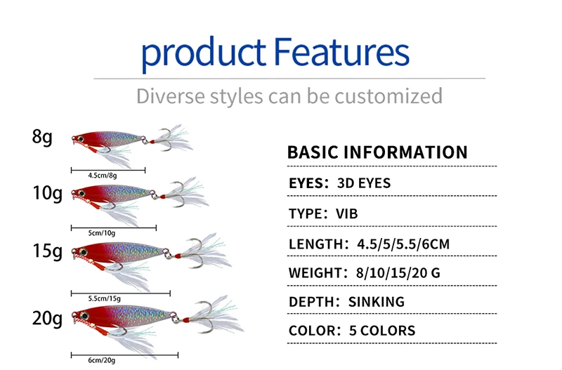 Señuelo de pesca de rebanada, pesca en el mar, VIB, perca de lubina, cebo Artificial duro, 8/10/15/20g, 4,5/5/5, 5/6cm, Wobblers, aparejos de pesca hundidos