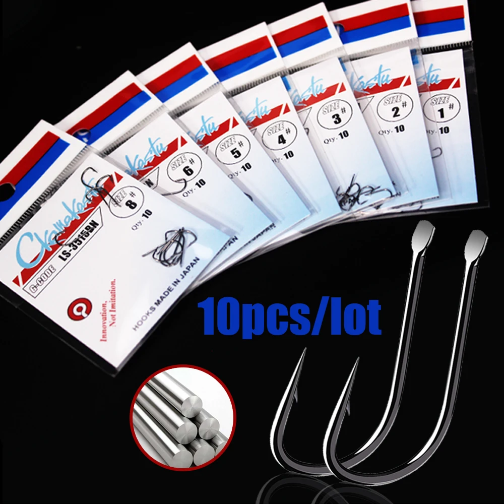 Sode 3515bn anzuelos de pesca, aparejos de cebo afilados de acero de alto carbono, púas negras, fuerte, gamakatsu, 10 unids/lote