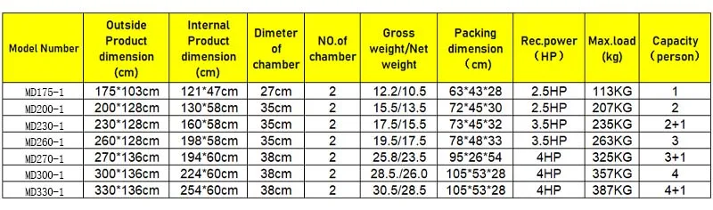 Presión de inflado: 3 PSI (tubos laterales)