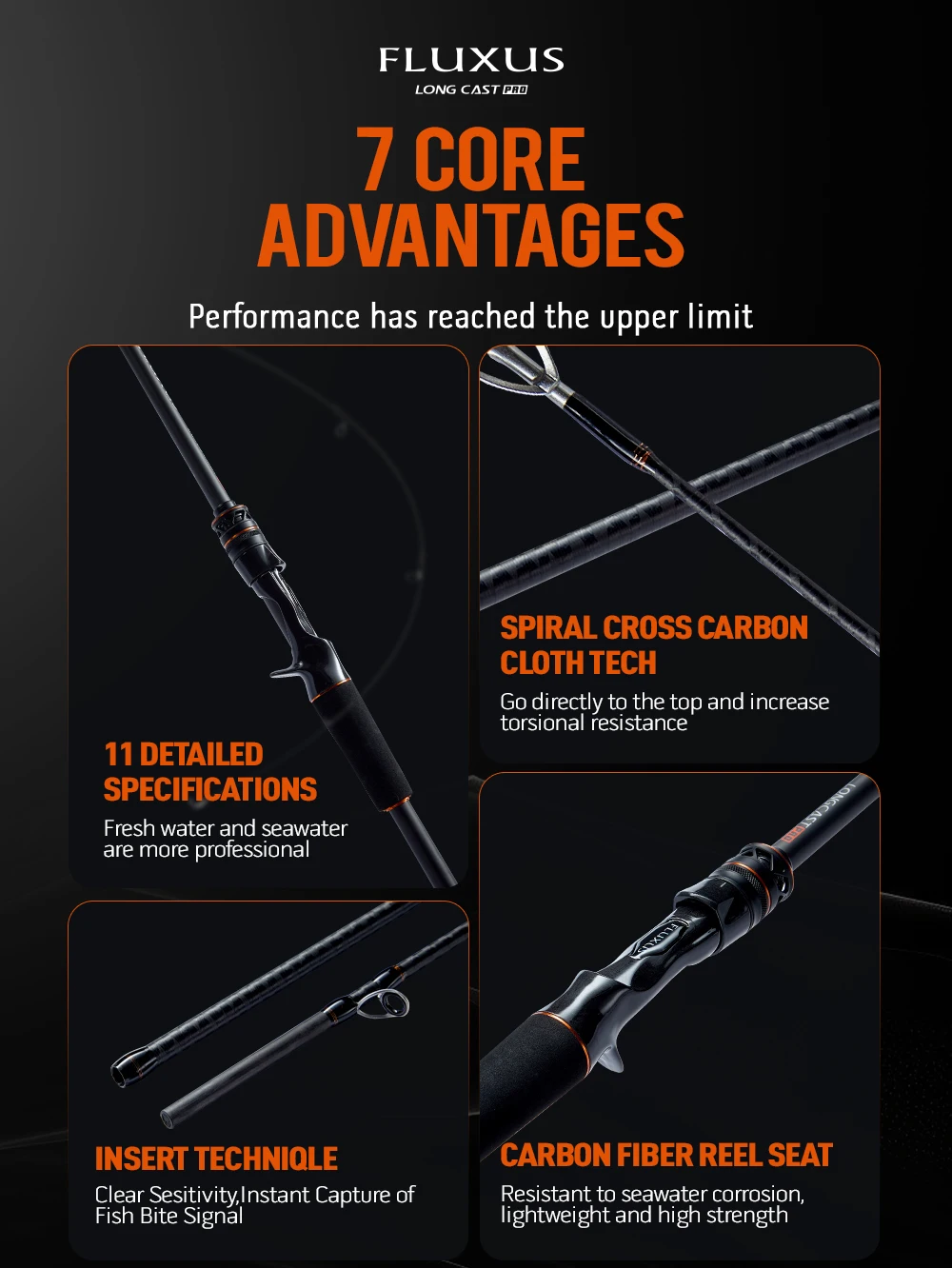 Soloking Fluxus-caña de pescar giratoria ultraligera de fundición larga, guía Fuji 40T de carbono, caña de pescar para Lucio multiusos