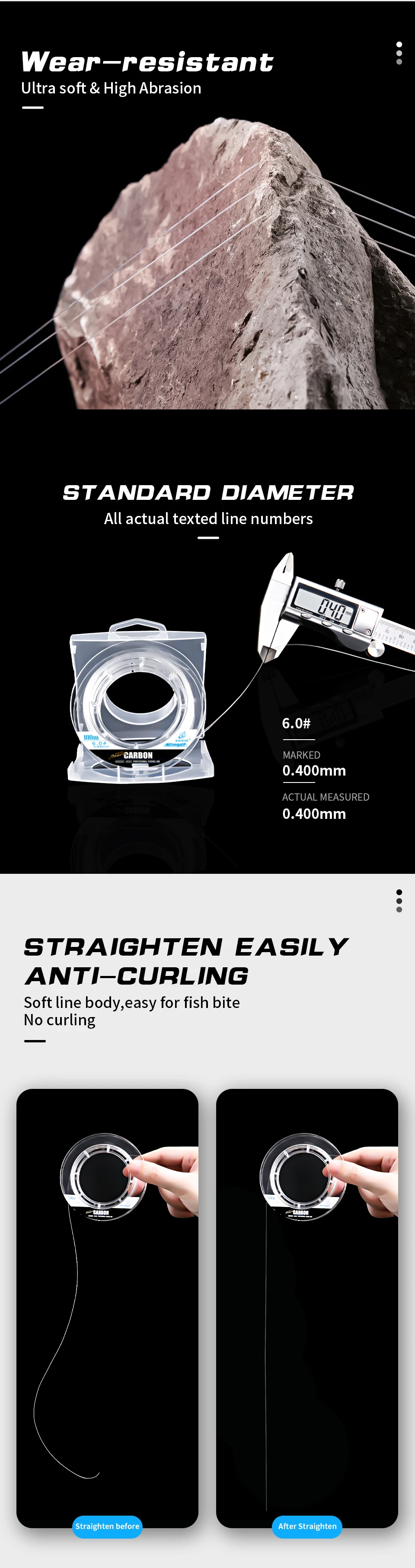 100% Sinking Fluorocarbon Fishing Line 50m 100m 3-35LB 0.148-0.470mm Leader Line for Freshwater Saltwater