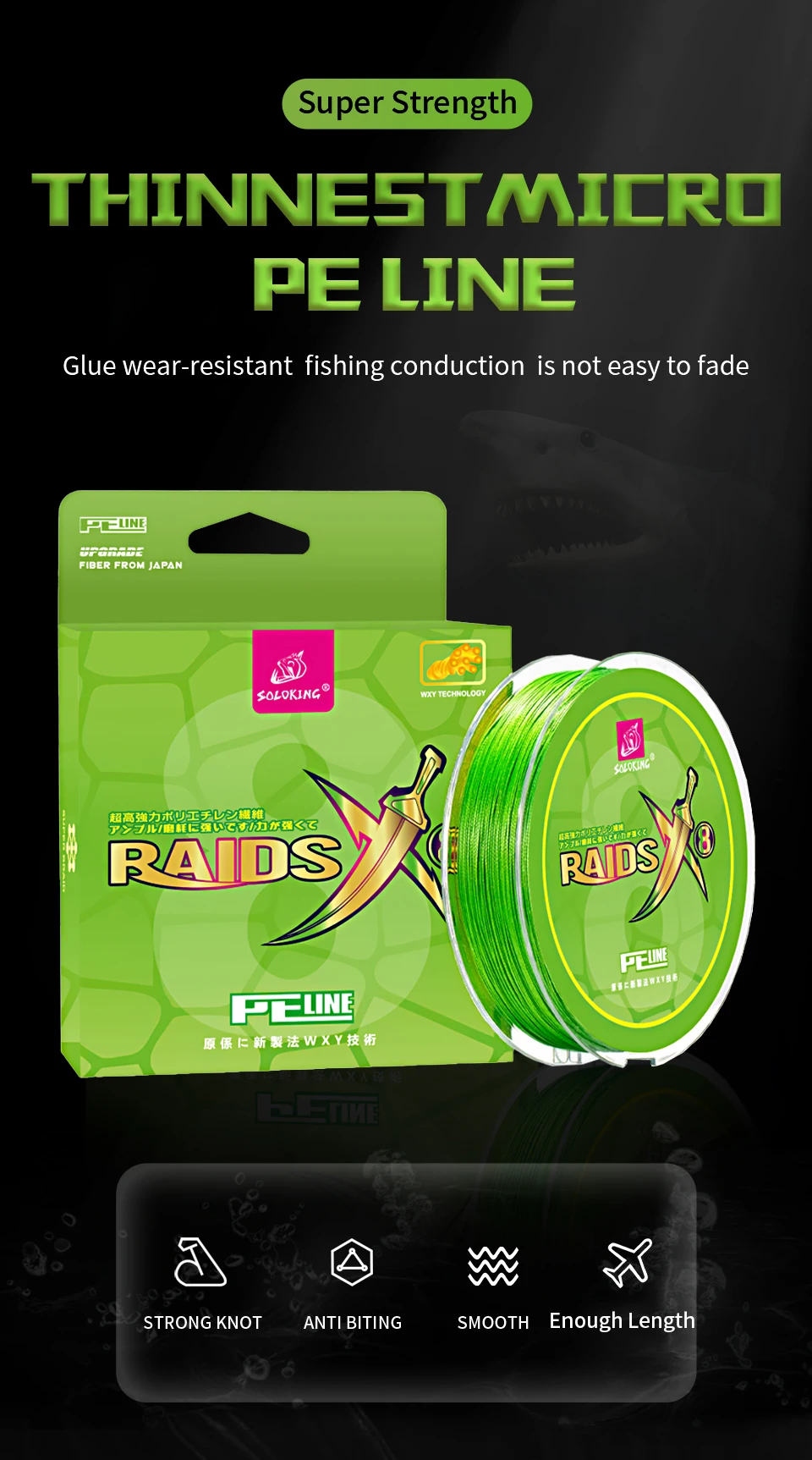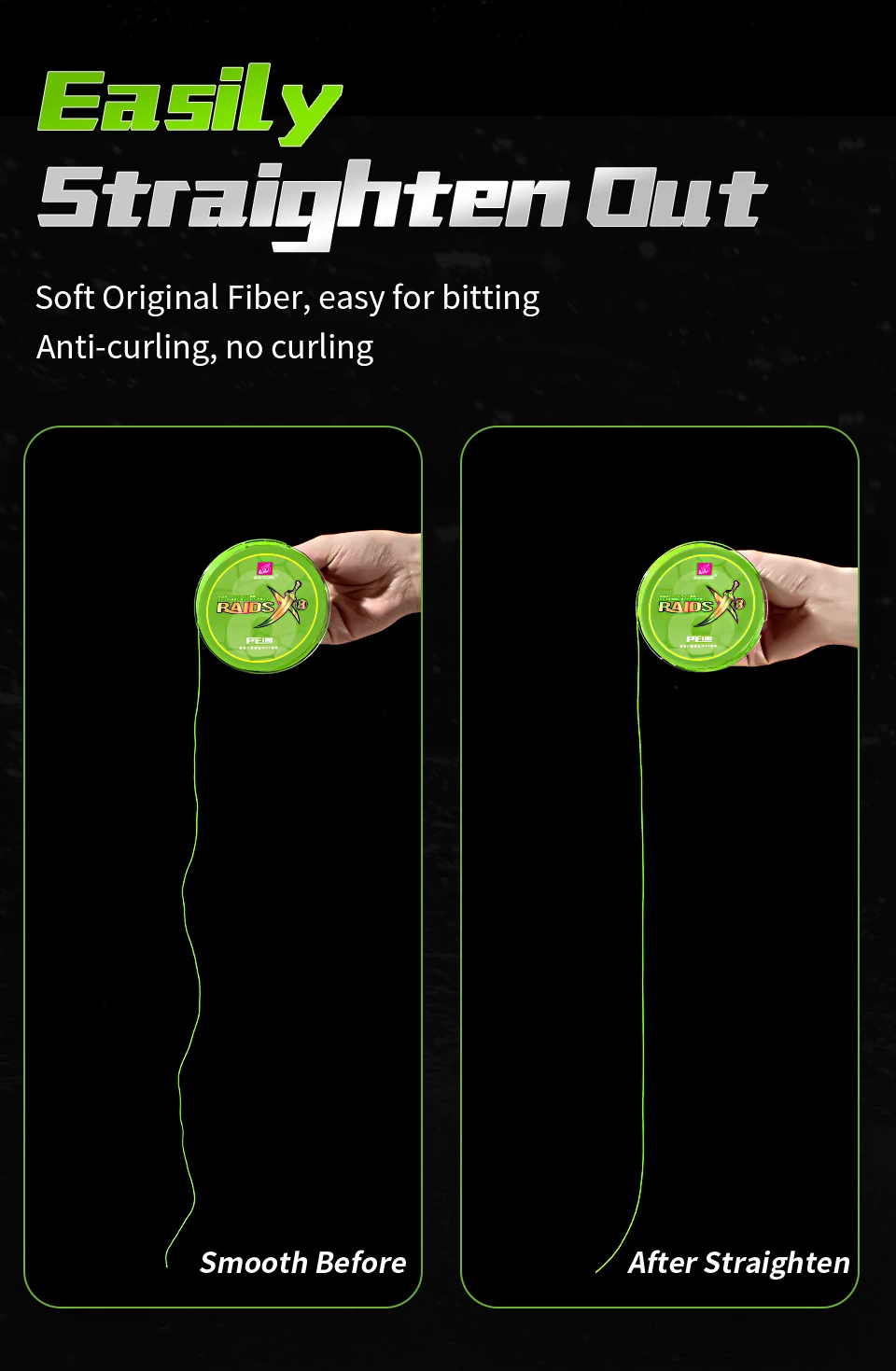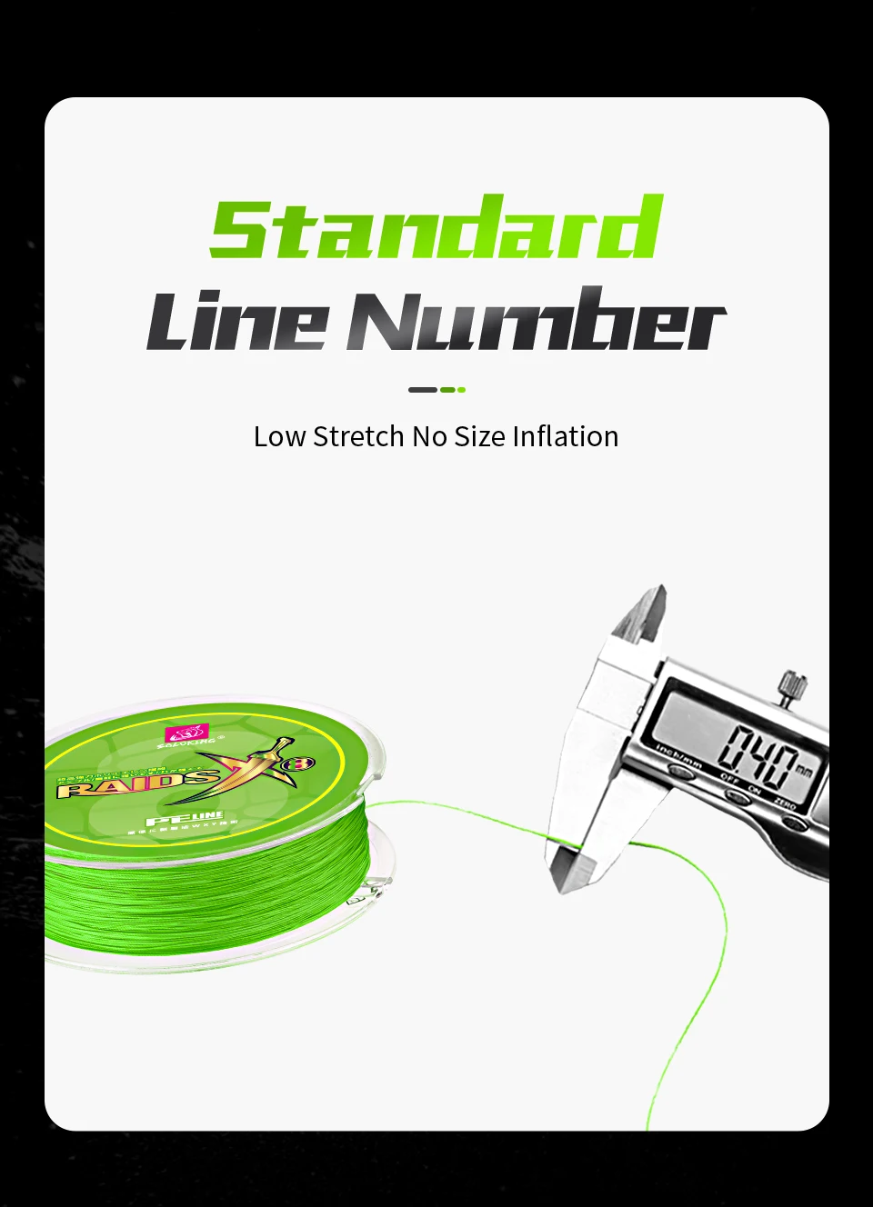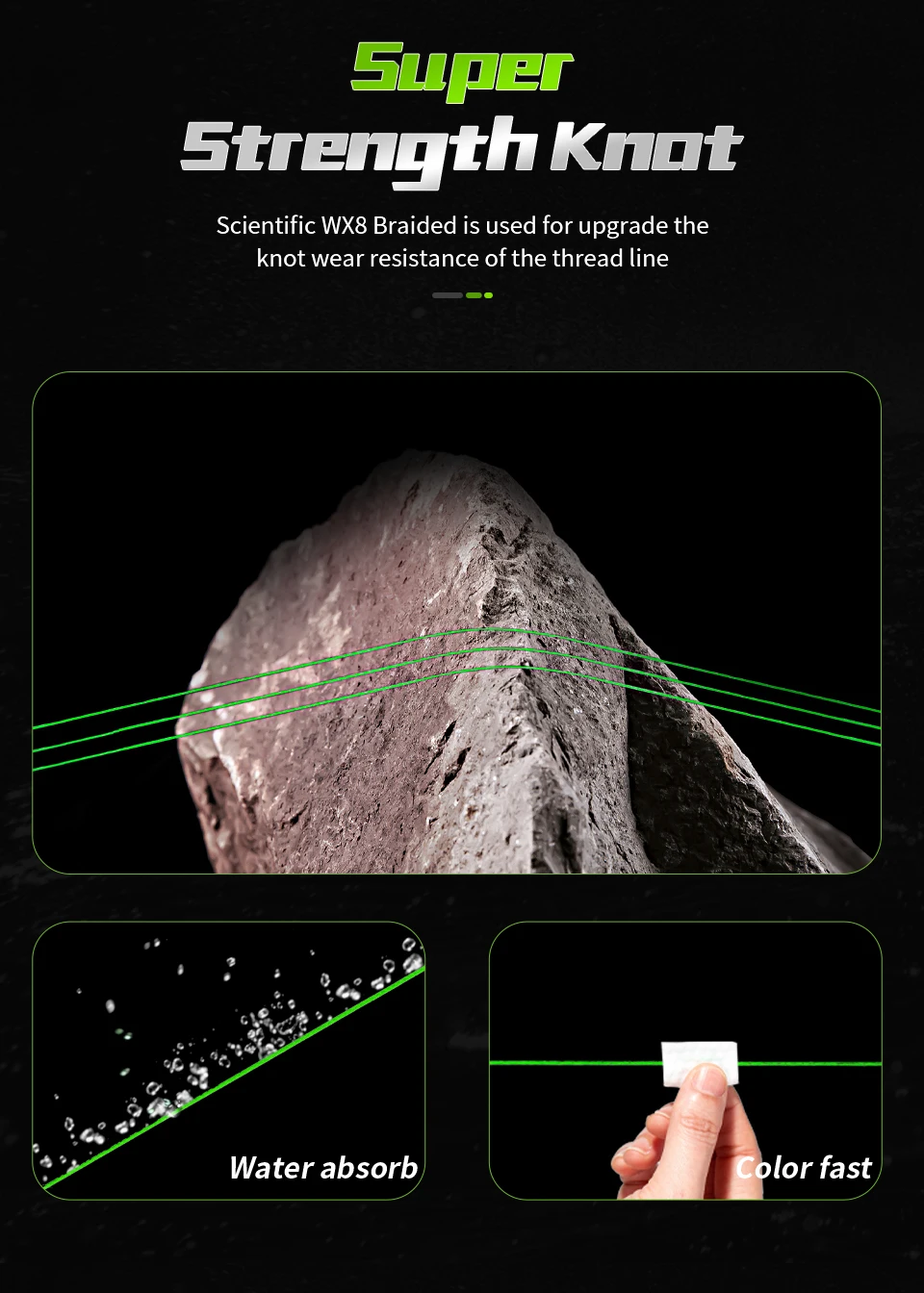 • 8 hilos tejidos :La línea de pesca está compuesta por 8 hilos tejidos, lo que proporciona una resistencia y durabilidad excepcionales.