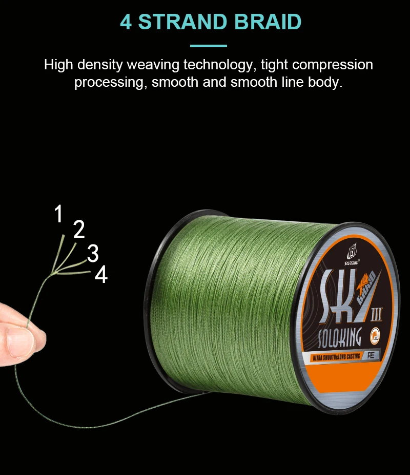SOLOKING-línea de pesca trenzada de PE, 100M, superfuerte, multifilamento, Material japonés, 10-80LB, 4 hebras