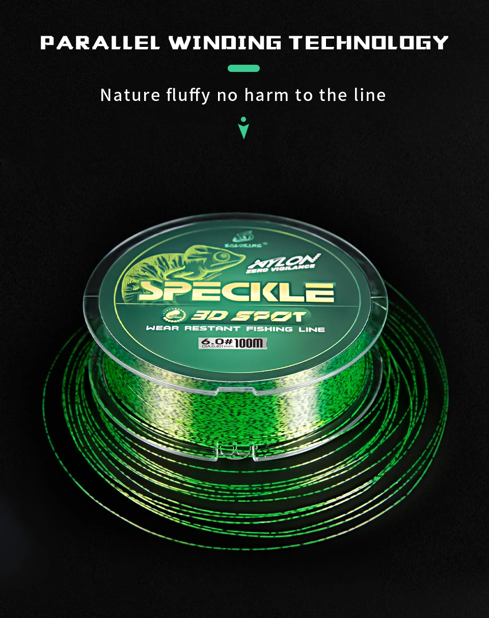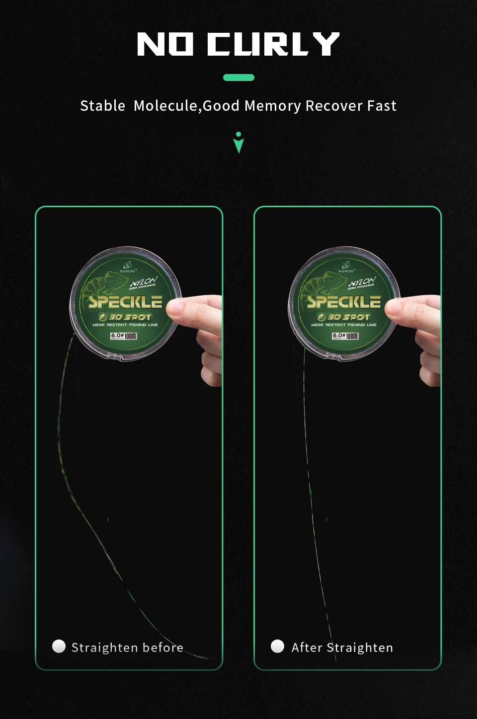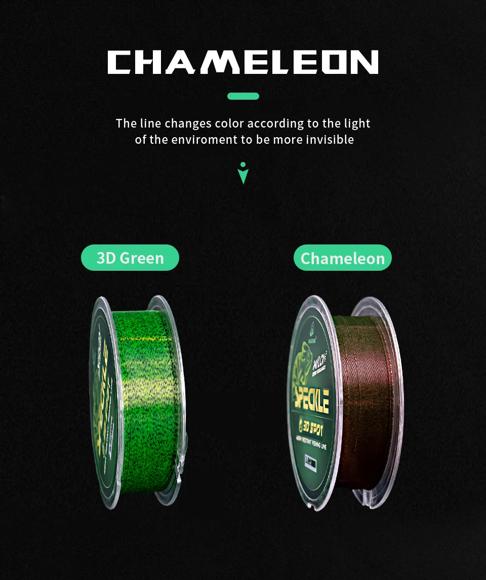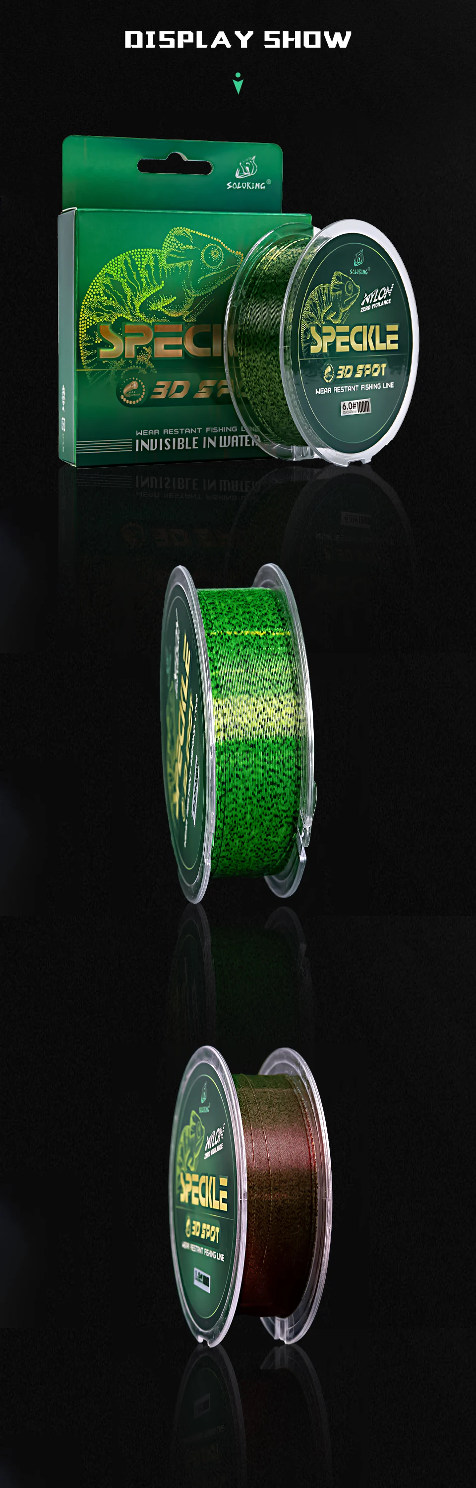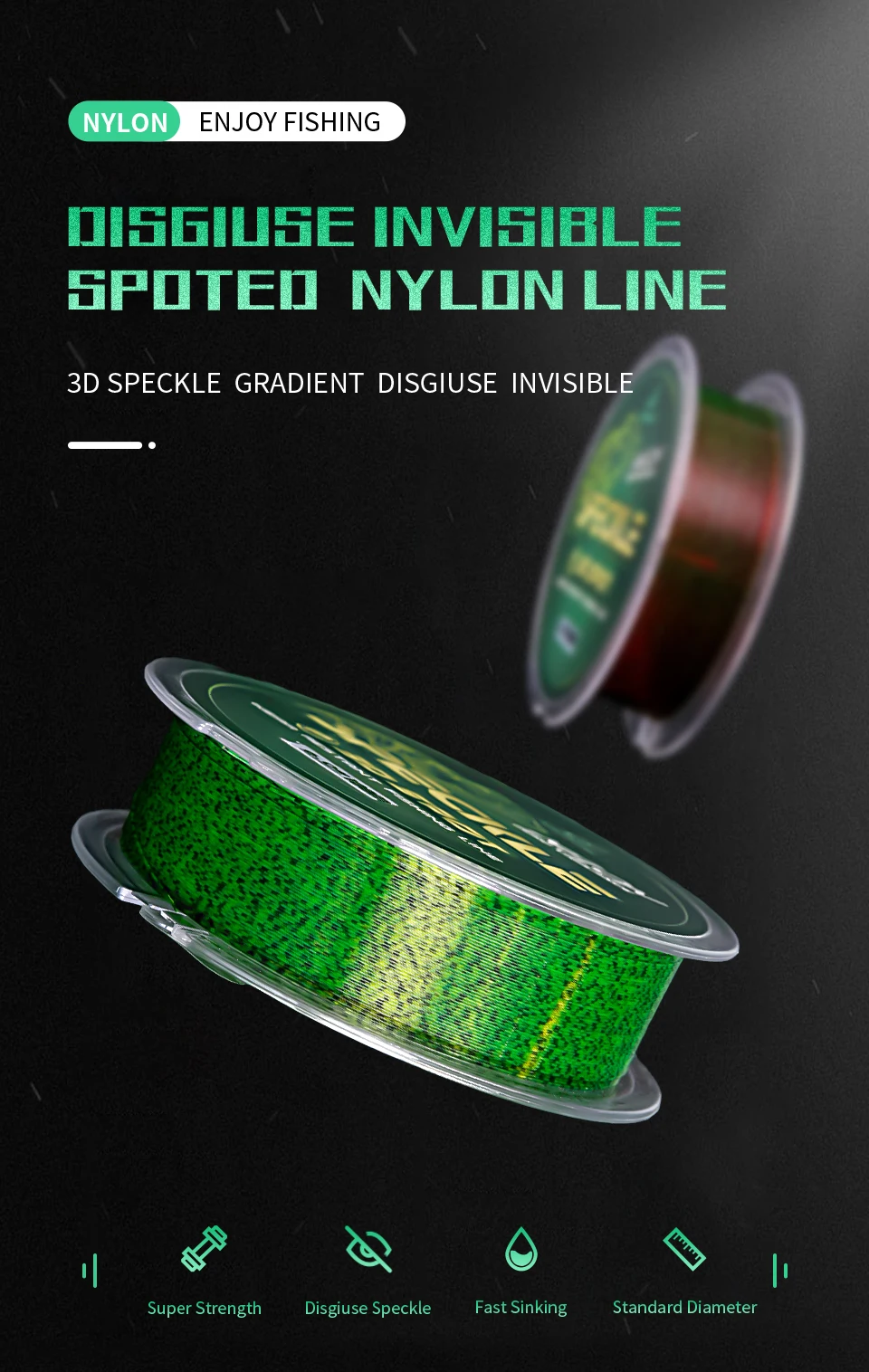 Línea de pesca de nailon manchado de 100M/500M, línea de monofilamento, nuevo diseño biónico, Camuflaje moteado