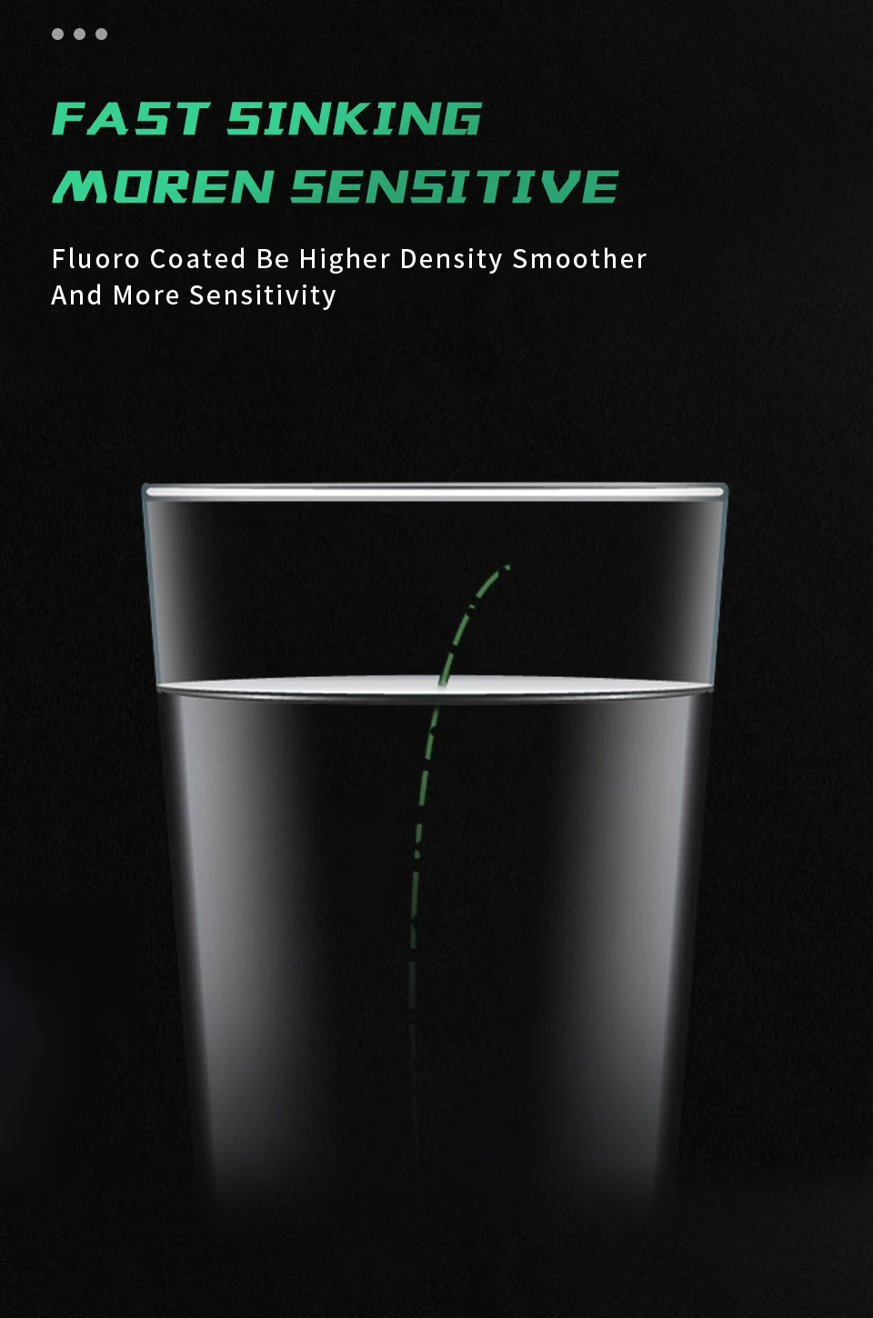 Súper gran resistencia a la tracción y al nudo. El sedal de fluorocarbono se hunde más rápido con baja absorción.