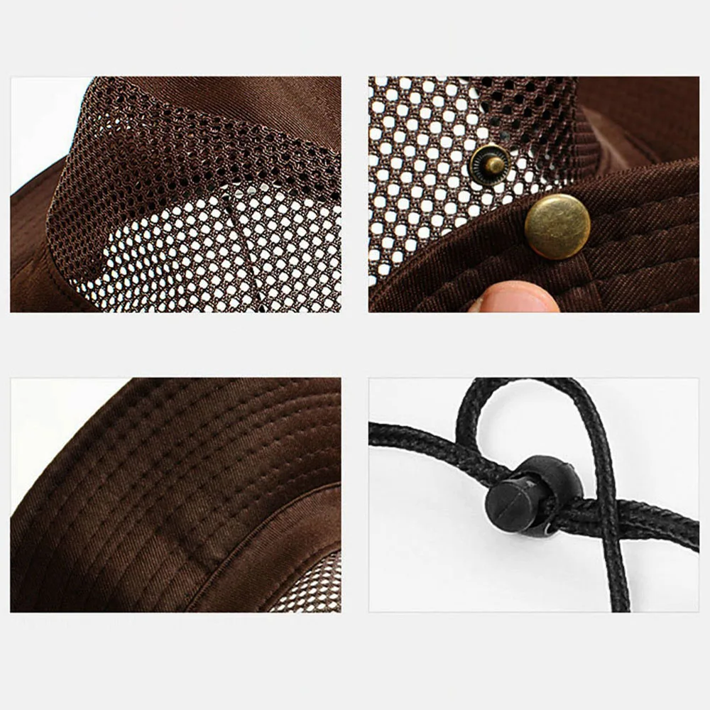 Nuevo con alta calidad Material: fibra de poliéster Color: negro/Beige/azul marino/verde militar/café Tamaño: 56-58cm Se puede apretar Cantidad: 1 ud. Características: -Es plegable, ligero y fácil de llevar. -Dos botones a presión ayudan a cambiar a otro estilo de sombrero. -Diseño de ala de sombrero grande, bloqueando eficazmente los rayos ultravioleta del sol. -Cuerda ajustable a prueba de viento y hebilla ajustable para una fijación más conveniente. -Diseño de malla transpirable, disipa el calor y ventila, reduciendo eficazmente la sensación de sulfato durante el uso. El paquete incluye: 1 ud. De gorro de pesca Aviso: 1. Transición: 1cm=10mm=0,39 pulgadas. 2. Permita un error de 1-2mm debido a la medición manual y asegúrese de que no le importe antes de realizar el pedido. 3. Entienda que los colores pueden existir diferencias cromáticas diferente como la colocación de las imágenes.