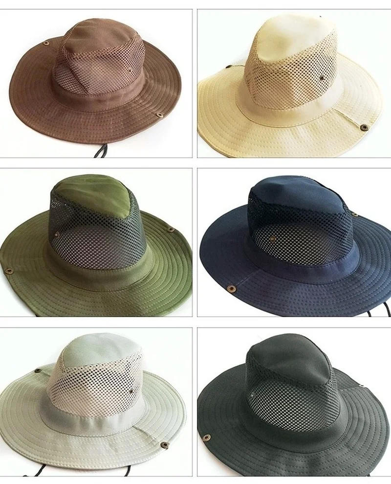 Sombrero de cubo al aire libre para hombre, gorra de Panamá transpirable de algodón, malla para pesca en la jungla, senderismo, playa, Protector solar