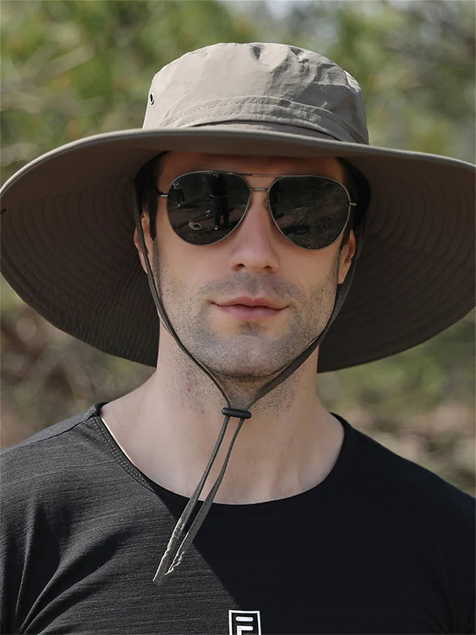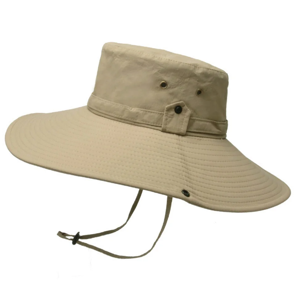 Sombrero de cubo impermeable con ala de 12cm para hombre, sombrero de sol con protección UV para verano, gorra de pesca para senderismo al aire libre, sombrero Unisex de moda de Panamá