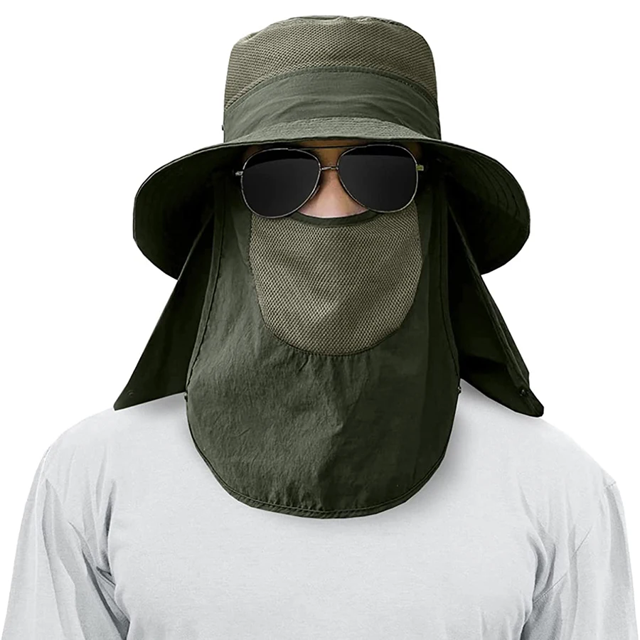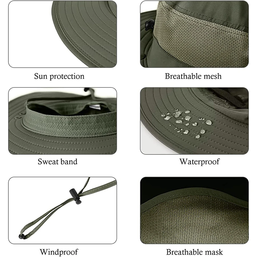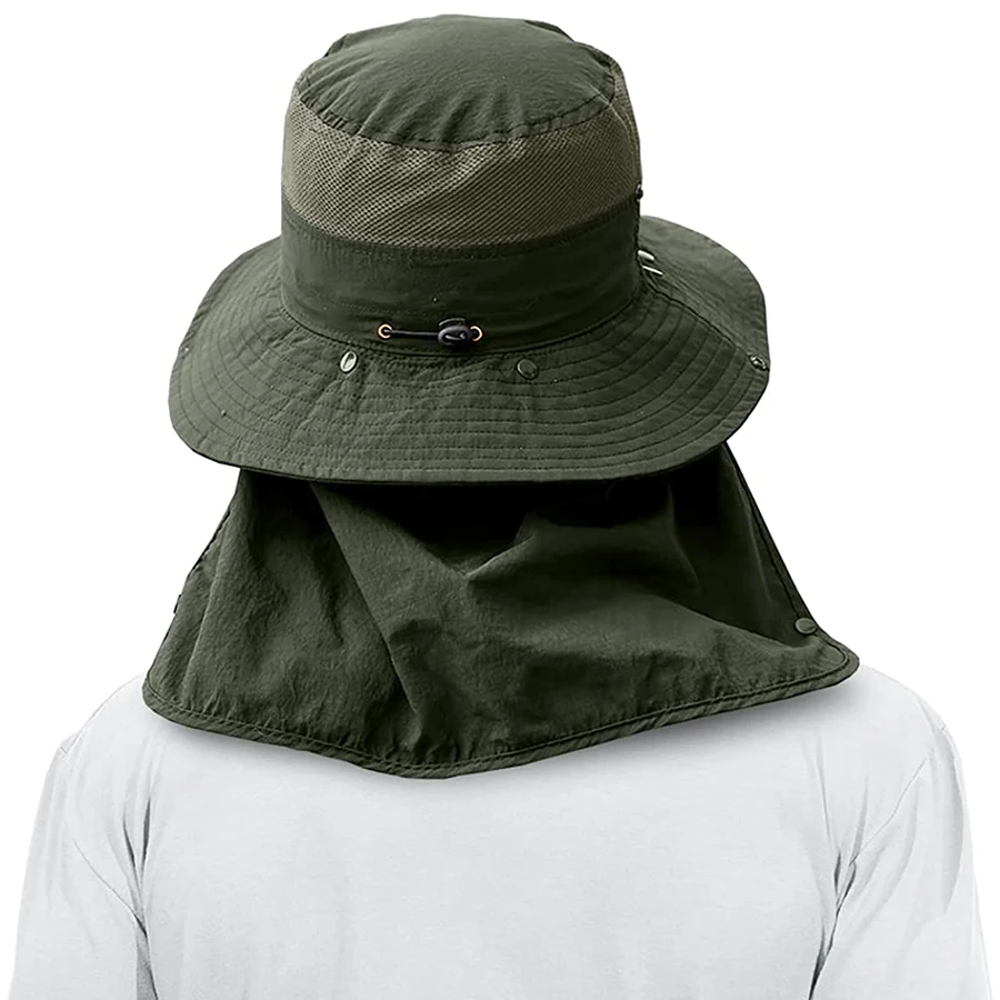 Sombrero para el sol para hombres/mujeres con protección UV Gorra de senderismo Safari de ala ancha con cubierta con solapa para cara y cuello