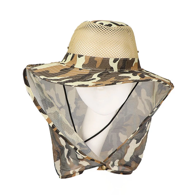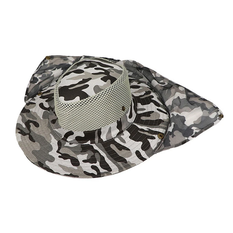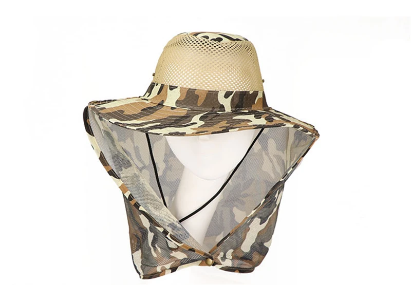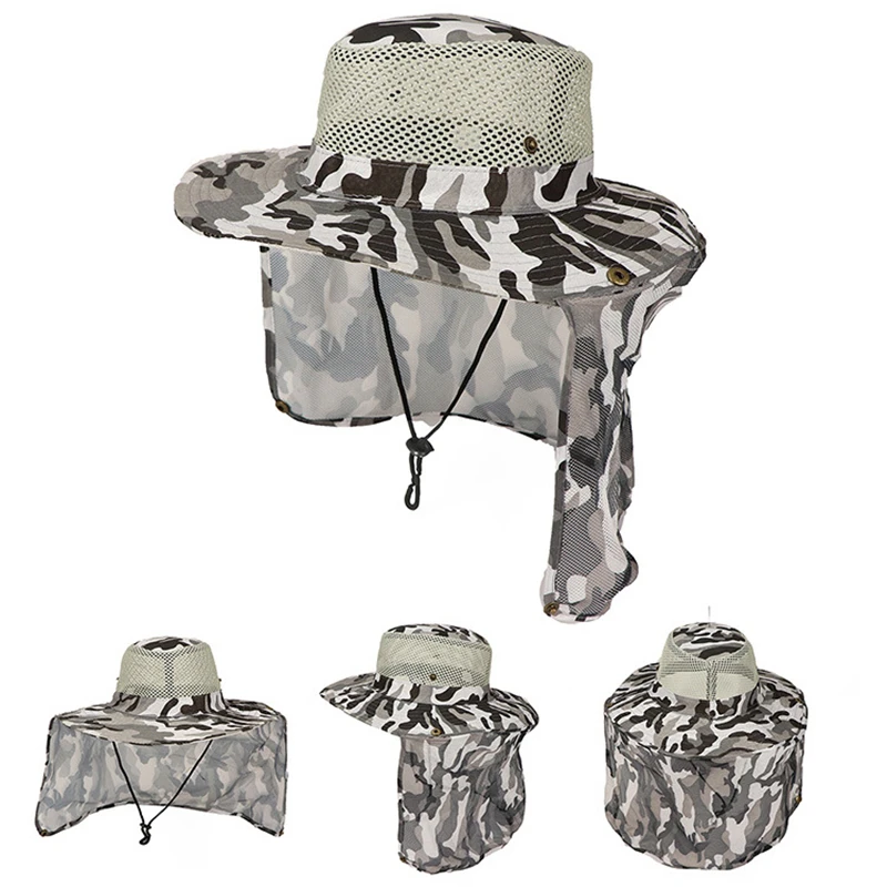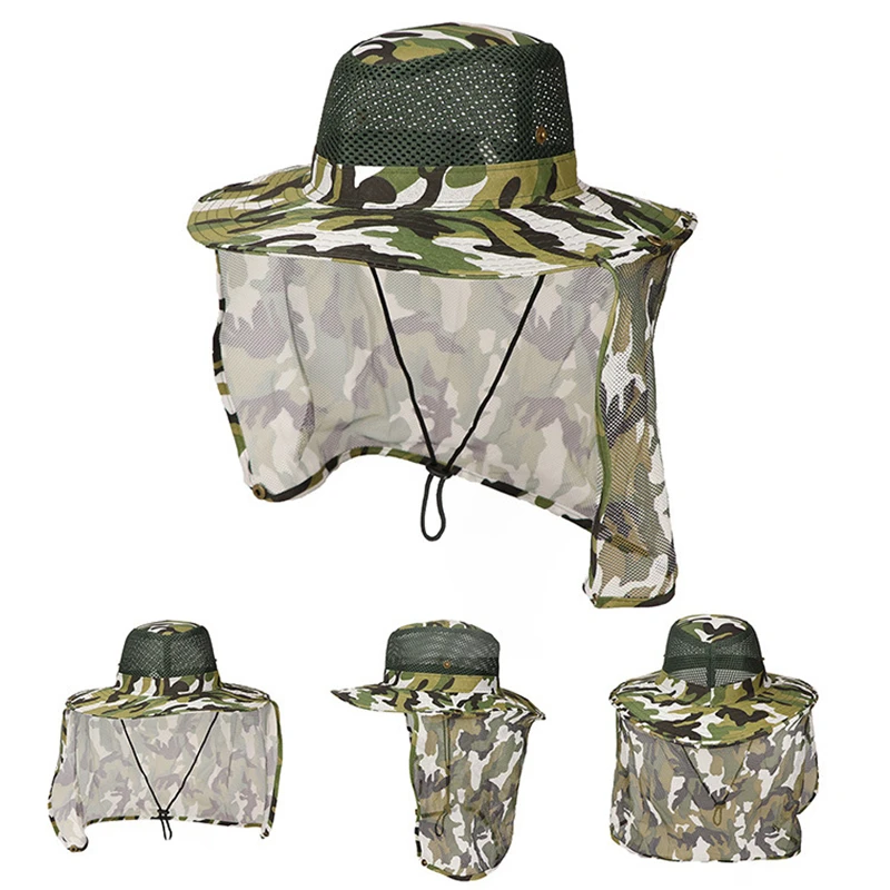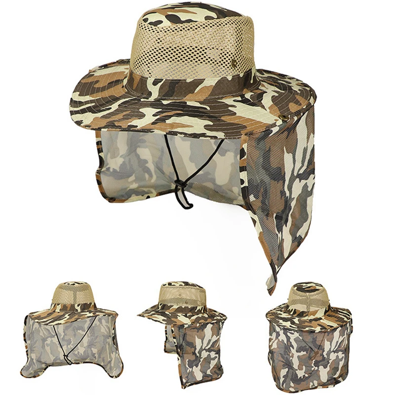 Sombrero de pescador de camuflaje al aire libre para hombre, sombrilla de pesca transpirable, malla ocular, protector solar para montañismo