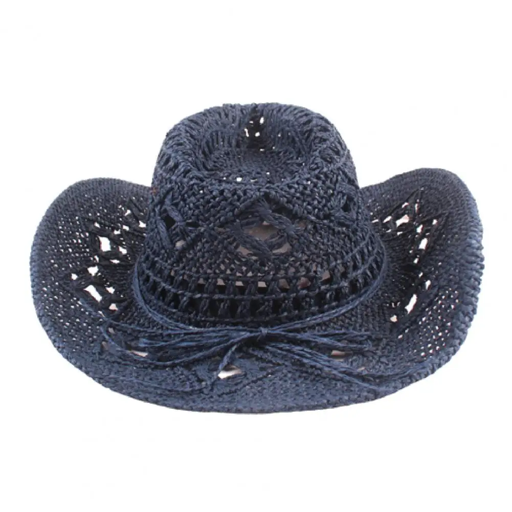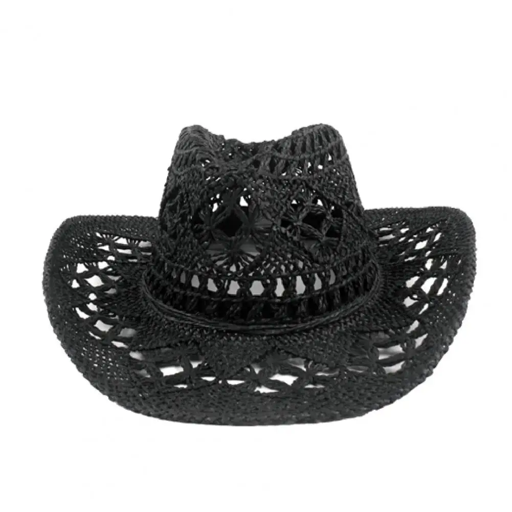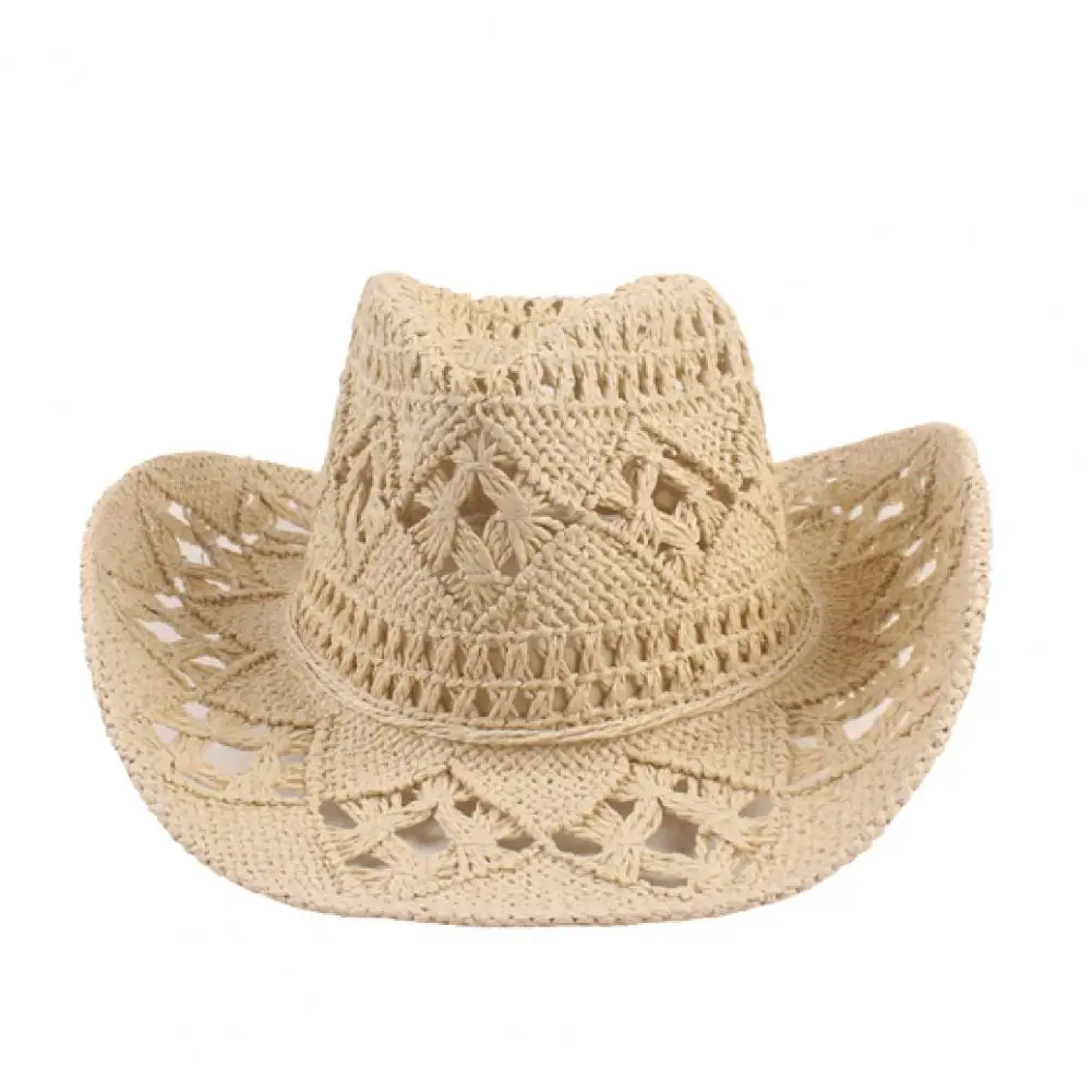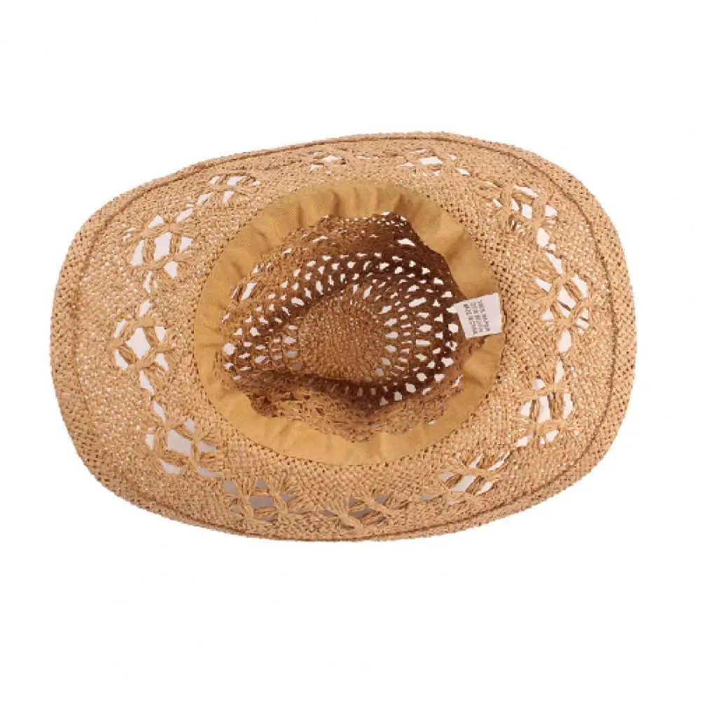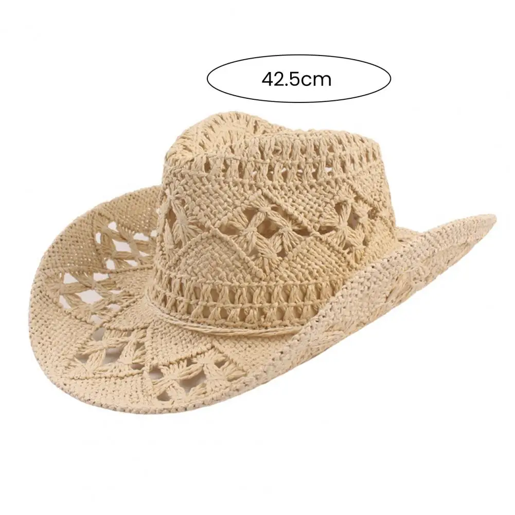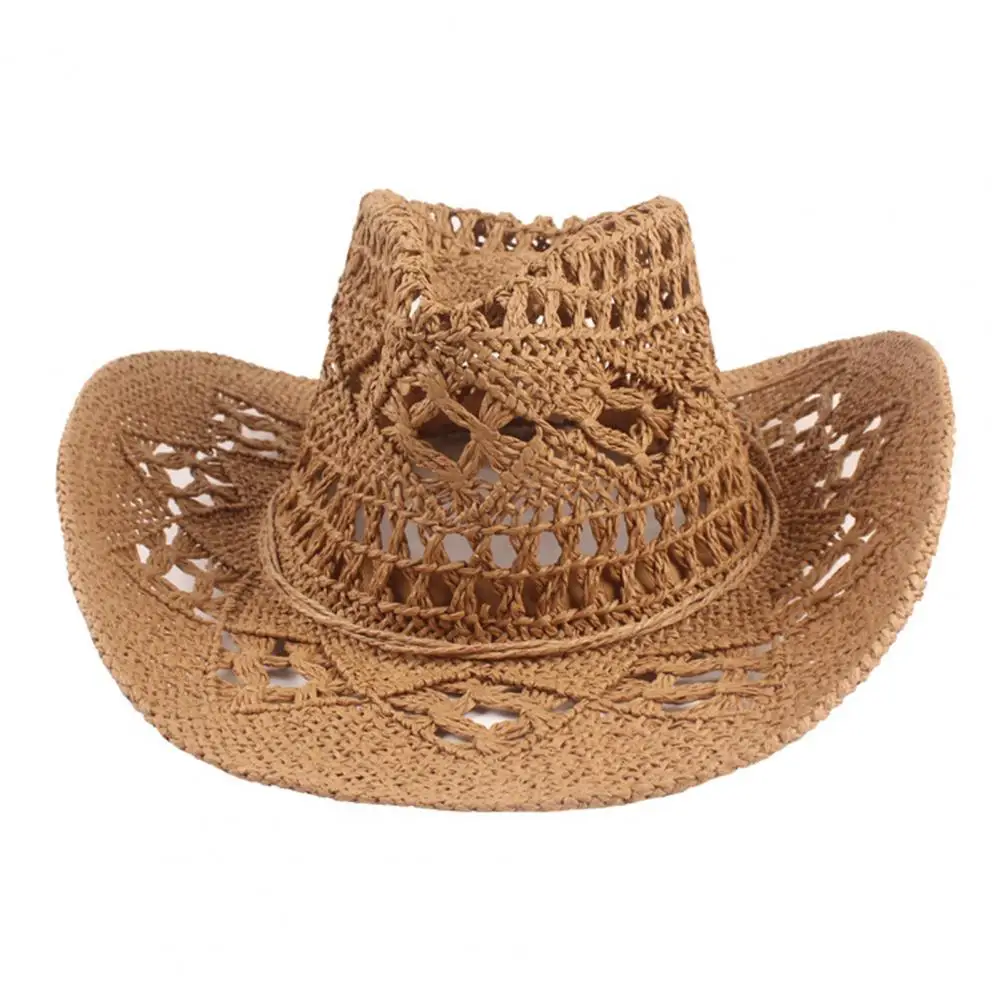 Sombrero de vaquero clásico Vintage ahuecado Unisex borde rizado ala ancha sombrero de sol para hombre sombrero de pesca