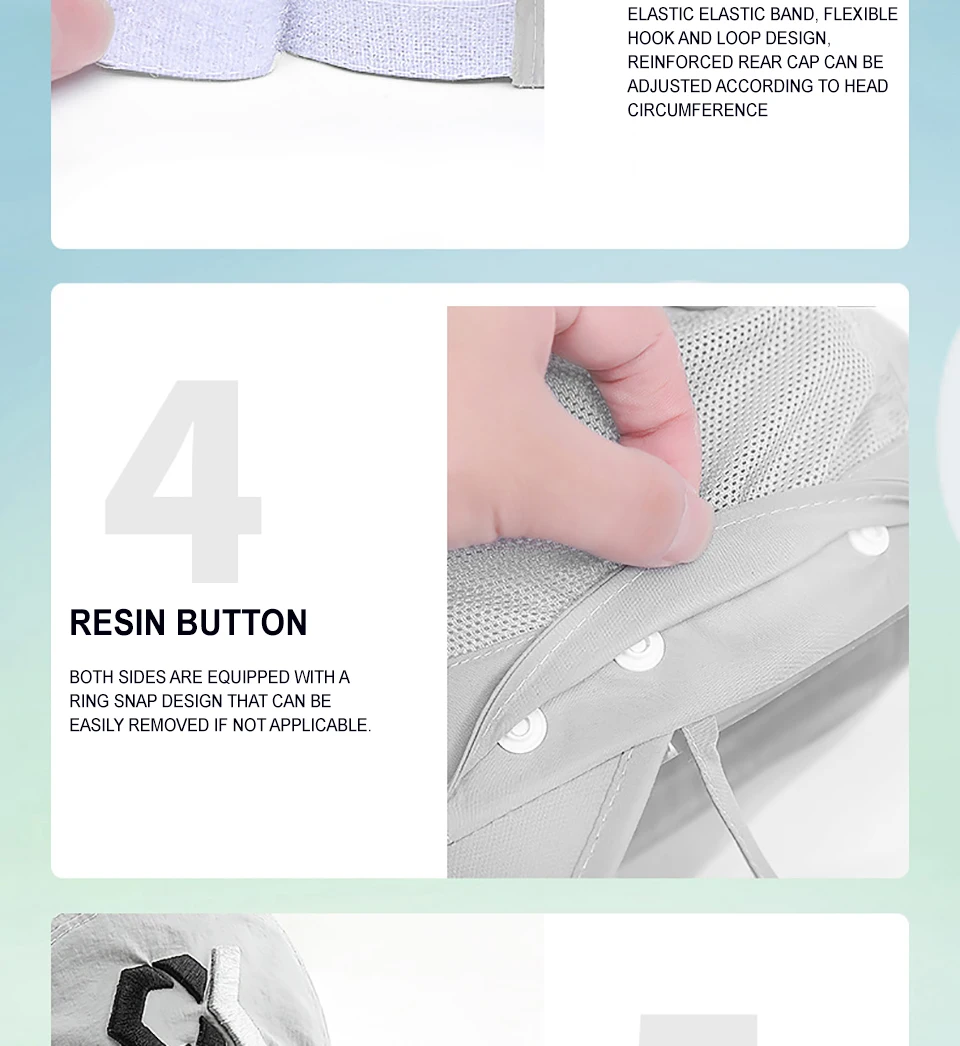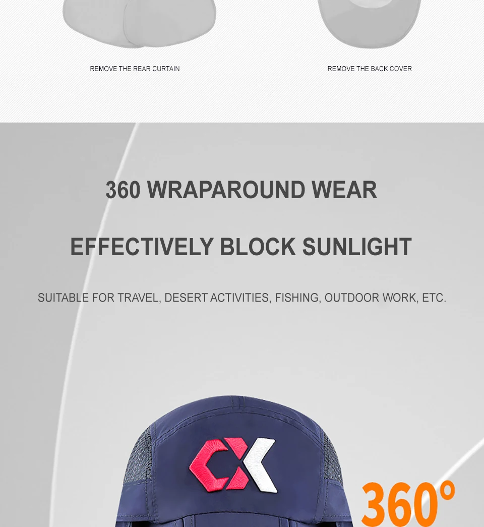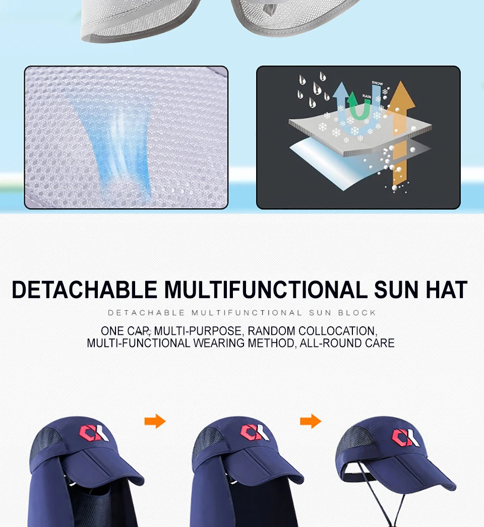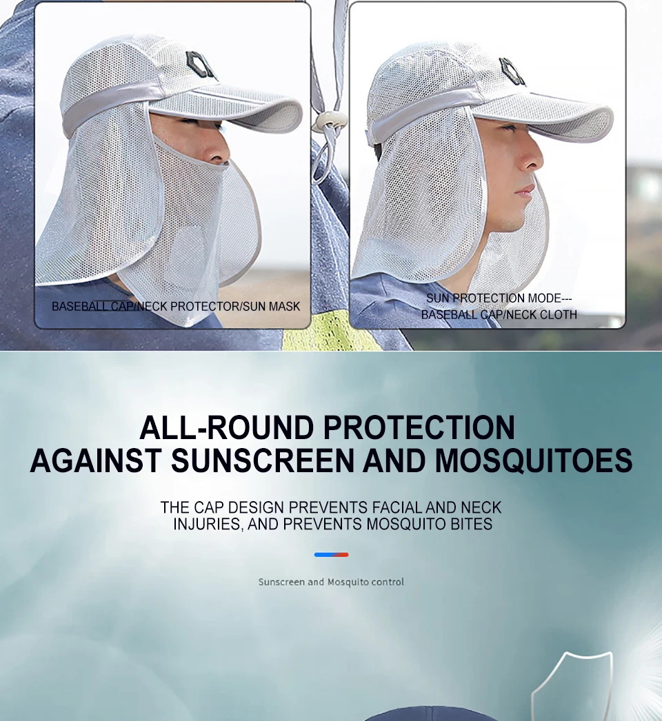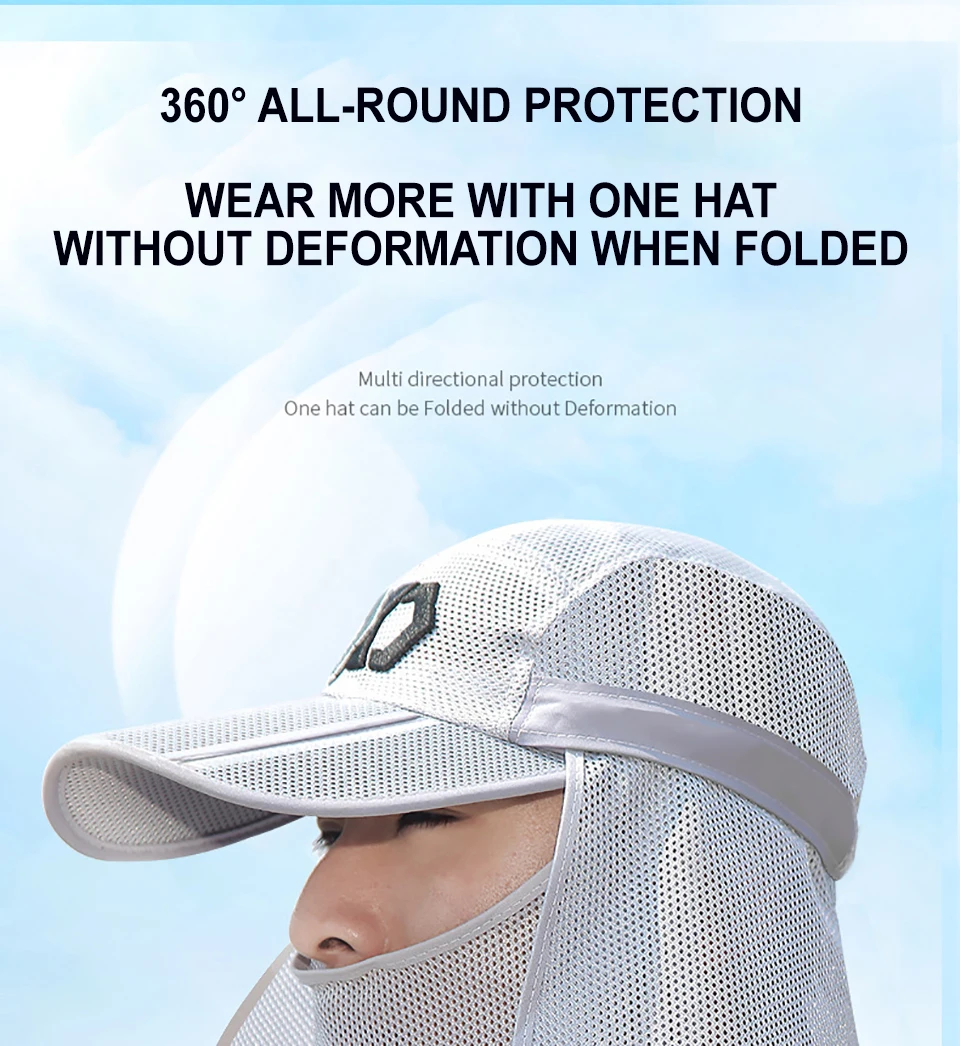 PROTECCIÓN SOLAR DE 360 °: gorra con solapa, protección solar UPF 50 + para mantener la piel delicada en las orejas del cuello y la cara a salvo de los rayos dañinos, todo rodeado por un chal grande, eliminación gratuita, protector solar y transpirable. Además de una solapa para el cuello extraíble y un protector facial transpirable, protege la piel de los elementos y la máscara puede proteger la cara del polvo. Gorra solar nueva con solapas extraíbles