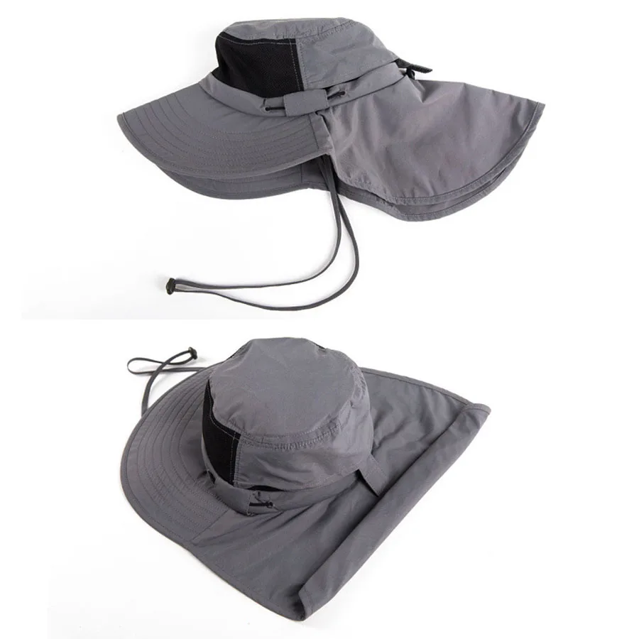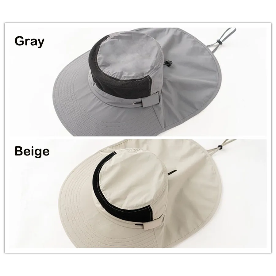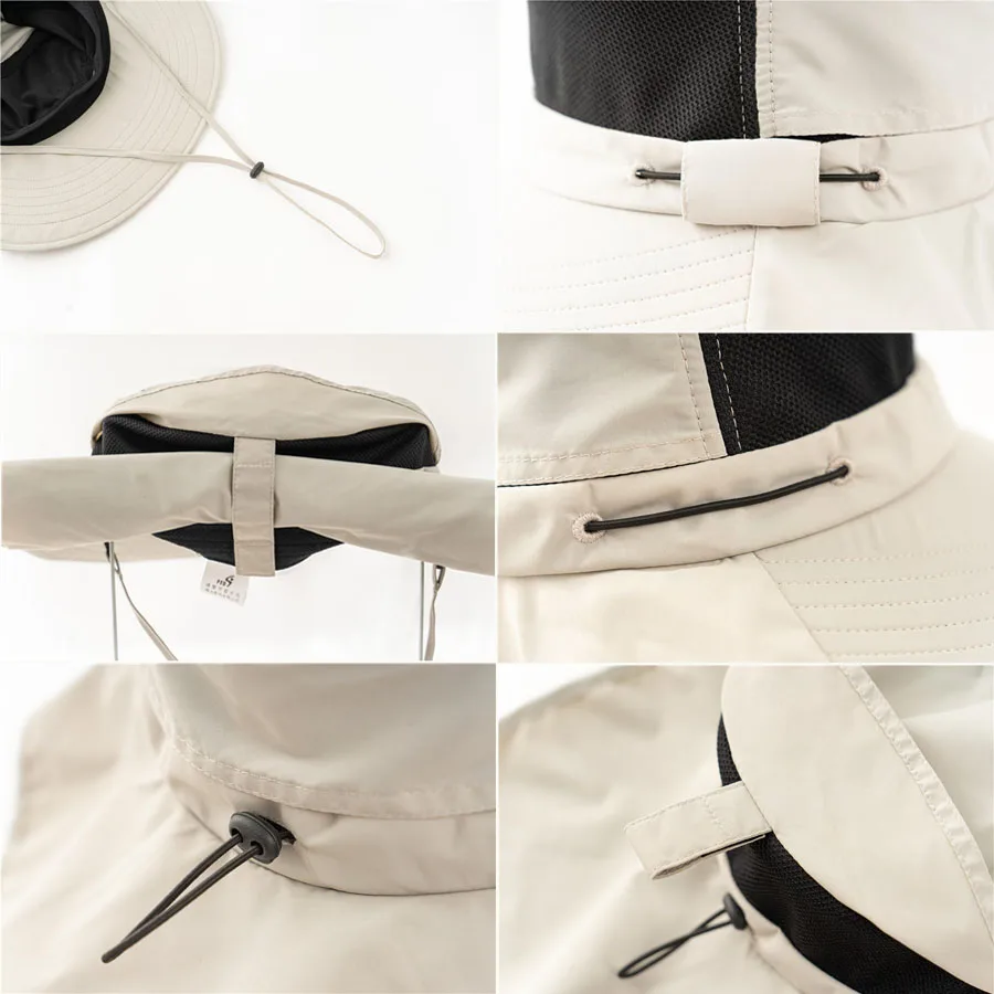 UPF 50 + Sombrero para el sol Sombrero de pesca de ala ancha con solapa para el cuello Sombrero Boonie transpirable Gorra de cubo