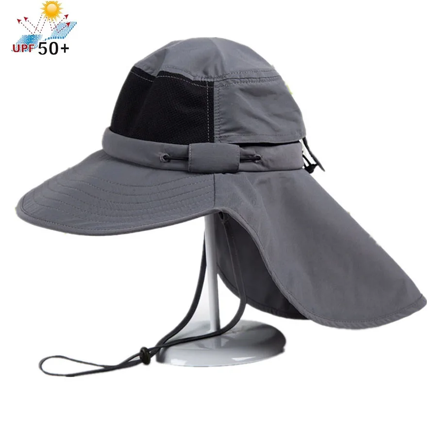 UPF 50 + Sombrero para el sol Sombrero de pesca de ala ancha con solapa para el cuello Sombrero Boonie transpirable Gorra de cubo