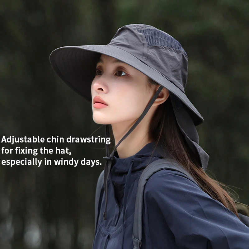3. Cordón de barbilla ajustable para fijar el sombrero, especialmente en días de viento.