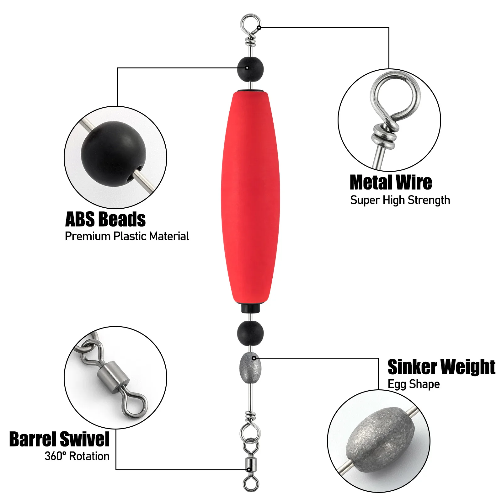 1. Dr.Fish Catfish Rig Floats se forma mediante la combinación de alambre de metal, flotador EVA, cuentas de plástico, peso de plomo para huevos y barril giratorio. Esta plataforma está diseñada para mantener el cebo en el fondo del agua y en excelentes zonas de pesca.