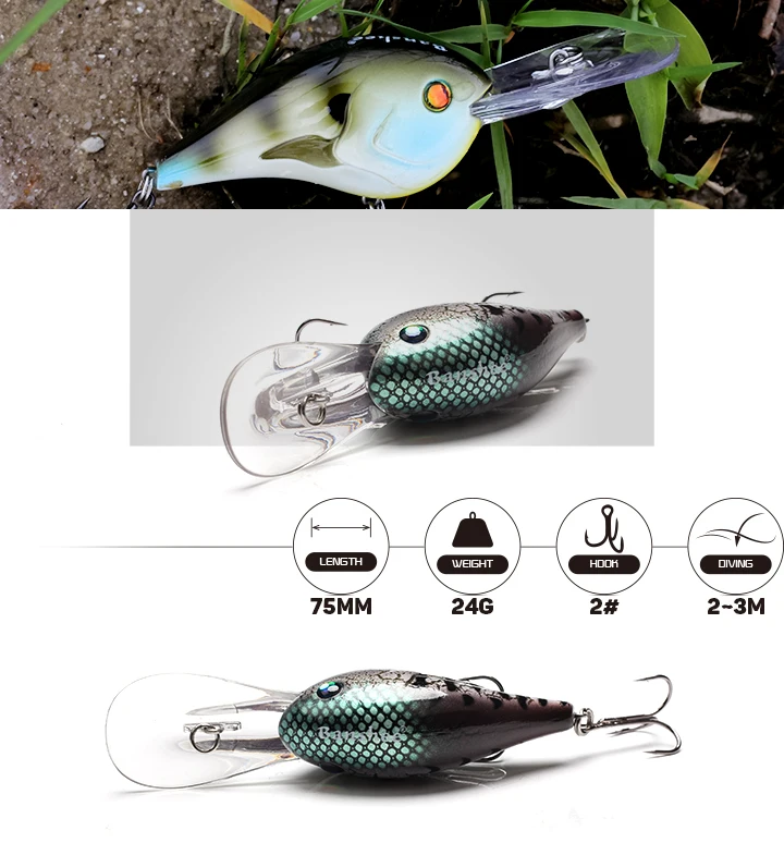 Diseñado con un tamaño de 75mm y 24g de peso, facilita una inmersión profunda de 6m ~ 10m, alcanzando el hábitat de captura deseado.
