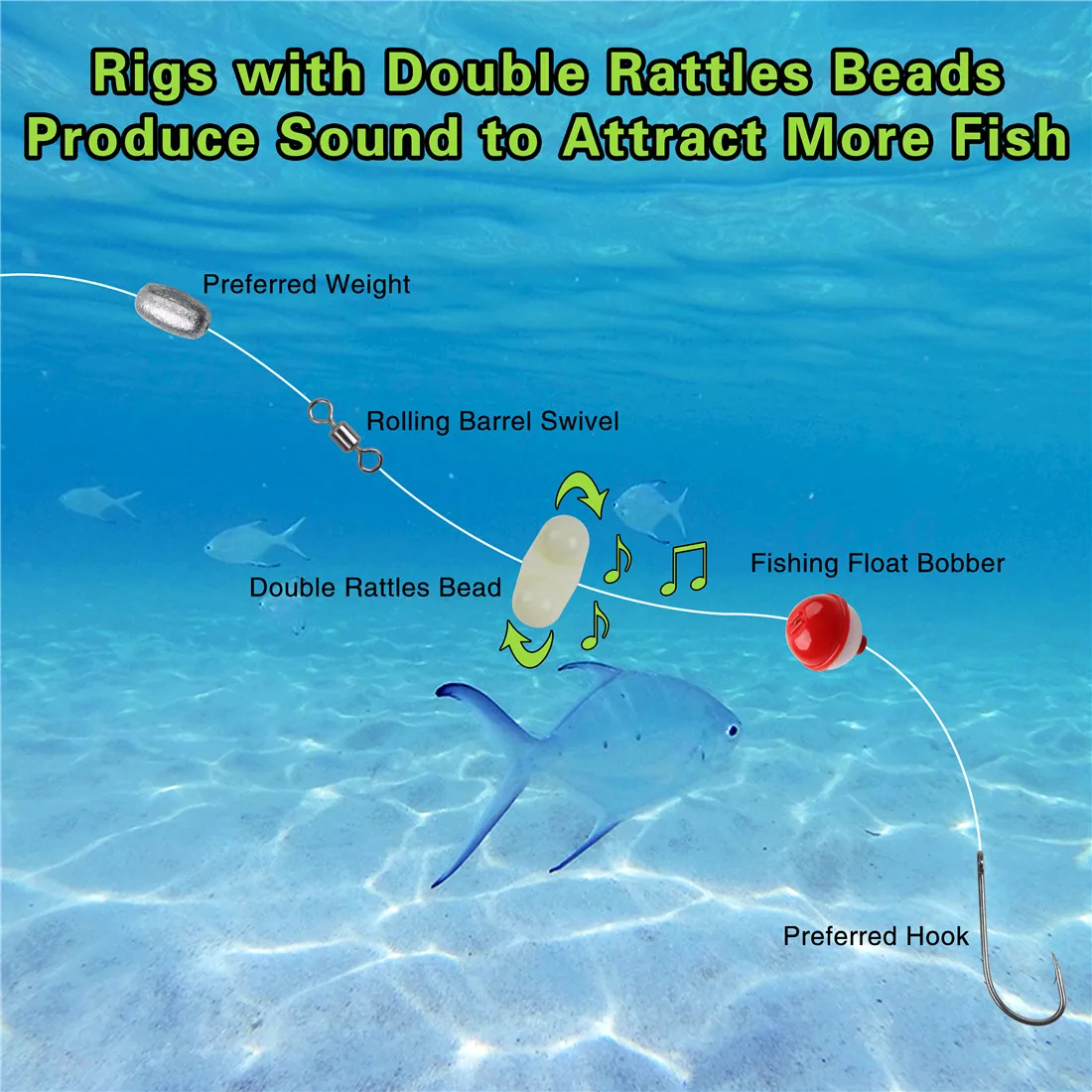 2.Los sonajeros de pesca en línea adoptan una estructura de doble campana, mejorando efectivamente el ruido y la vibración y atrayendo a los peces depredadores.